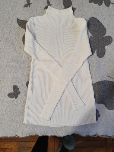 цвет красивый, пришло быстро.. но расстроена что она совсем тоненькая как водолазка, хотя написано что это свитер, думала она будет чуть теплее. на 42 прекрасно села. спасибо, заказывала за 550 р. больше она и не стоит