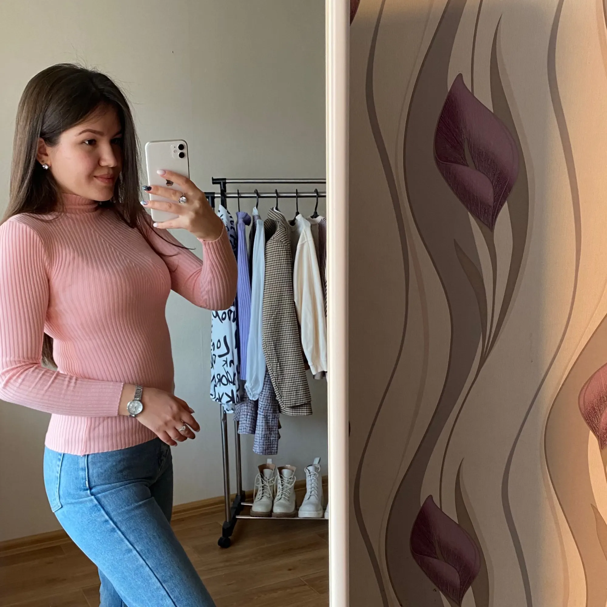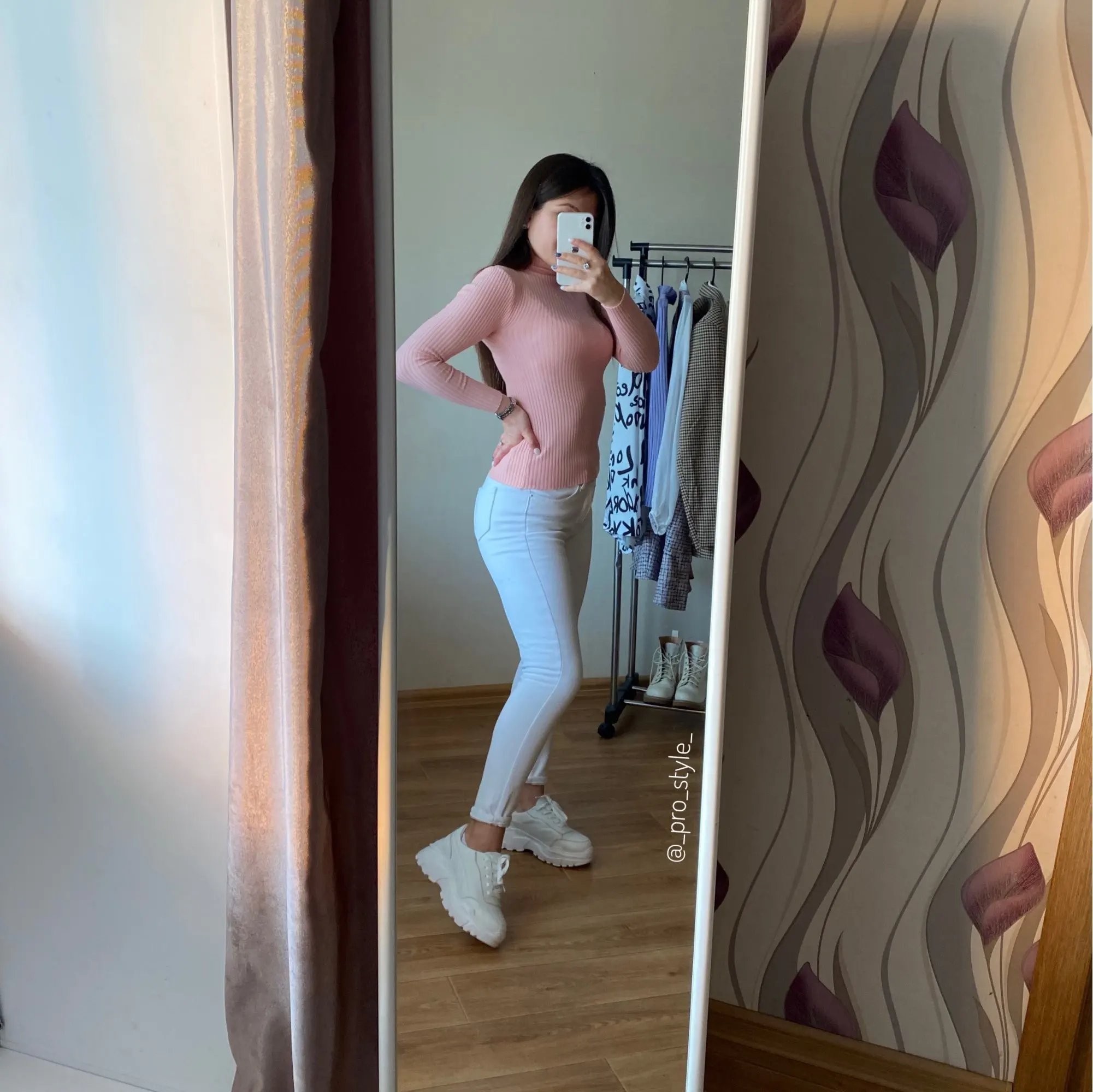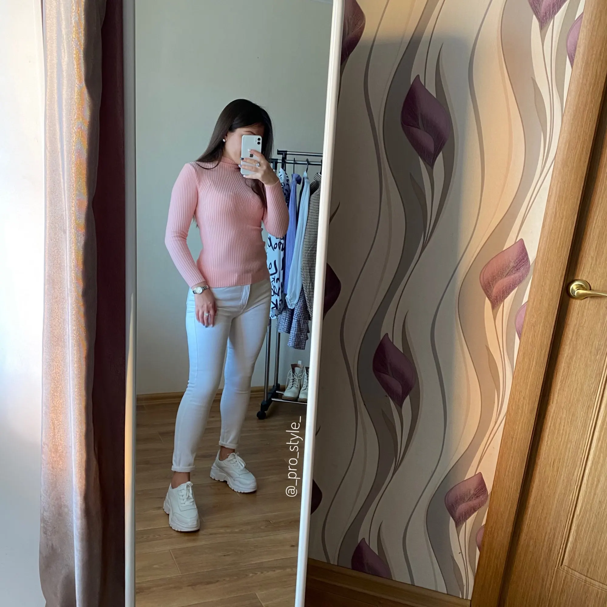 Классная водолазка, нежного, приятного оттенка. На параметры 90/75/100 см, рост 163 см села неплохо, в обтяжку. Все вопросы по поводу товара можете задать мне в инст @_pro_style_ , там вы найдёте фото, видео и подробный отзыв