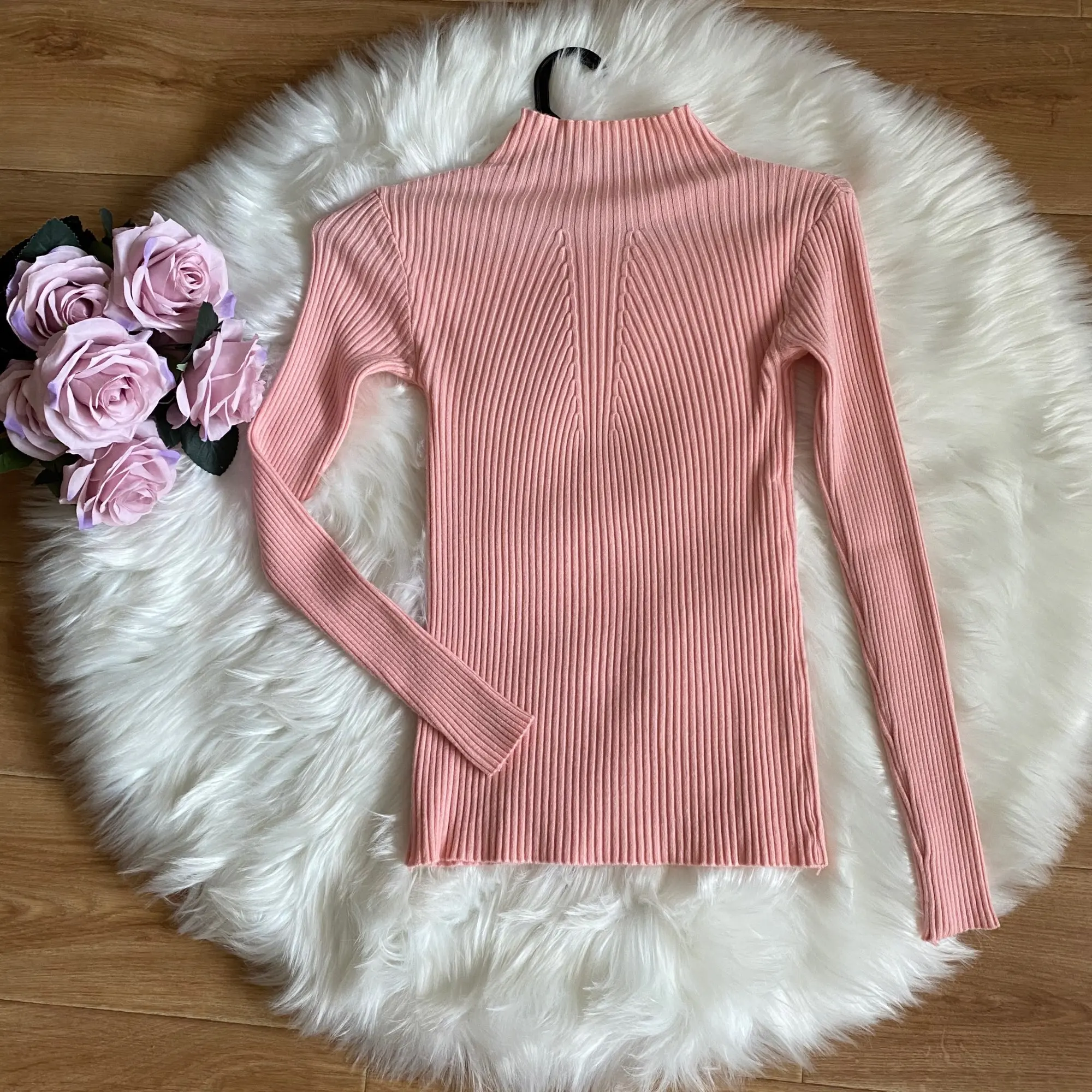Свитер женский трикотажный, с высоким воротом, Осень-зима 2020