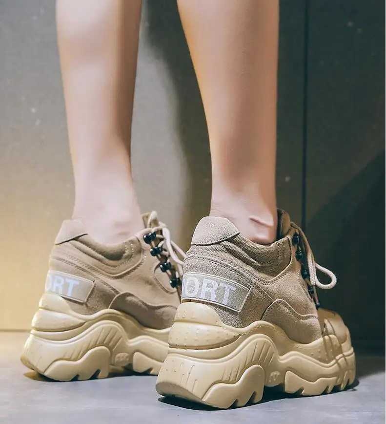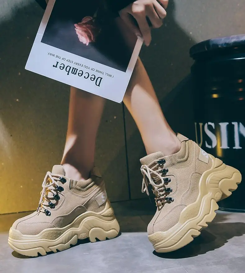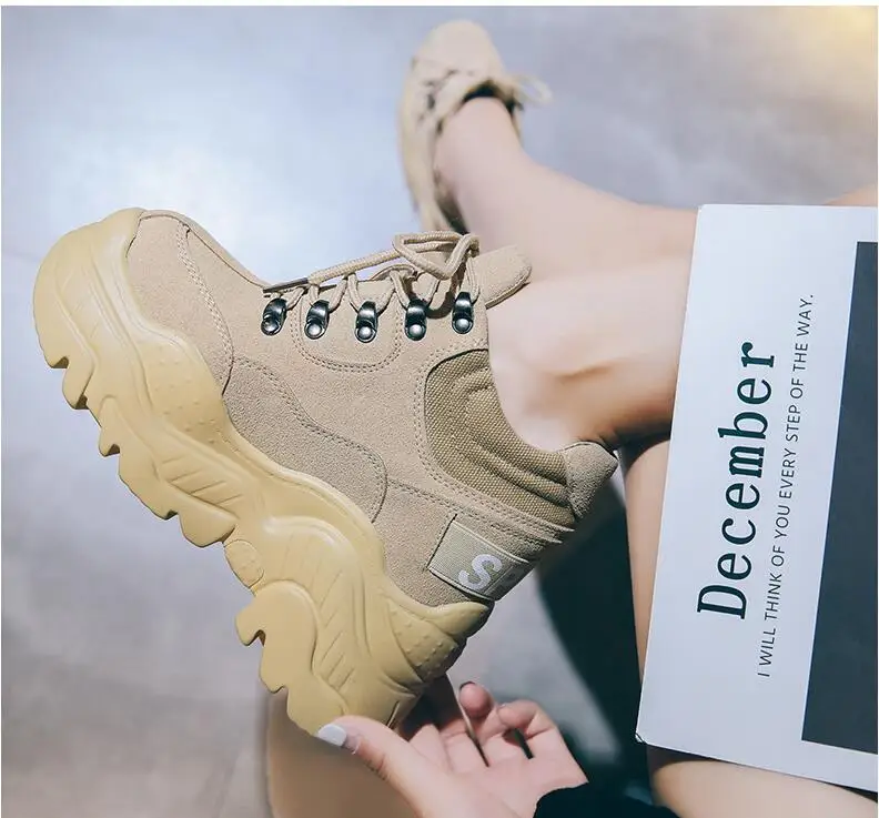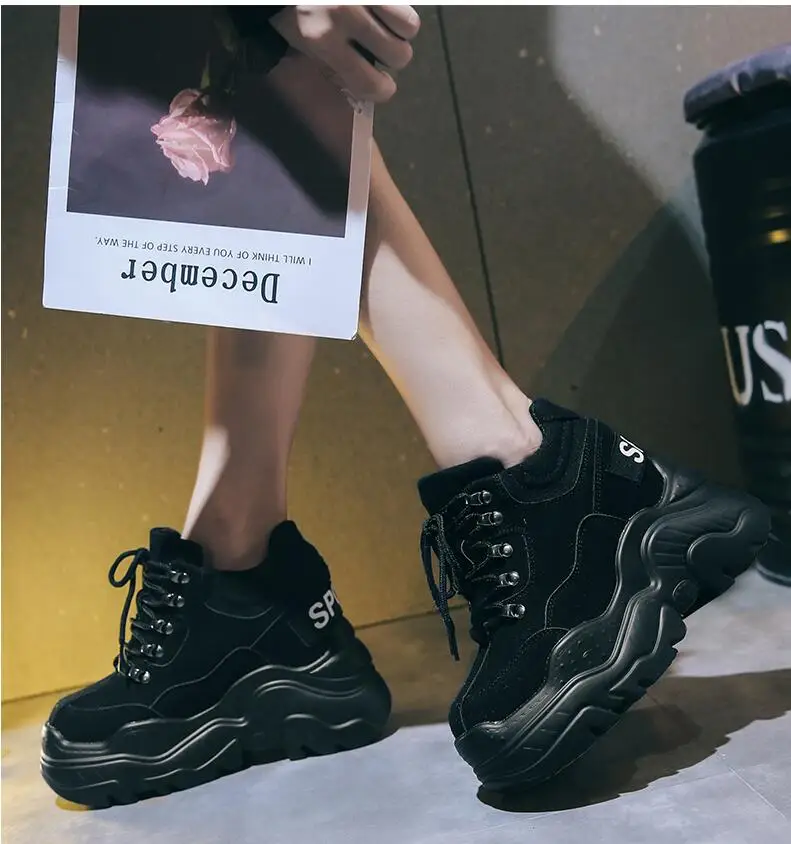 Женские ботинки на высоком каблуке 12 см на платформе, модная Женская Осенняя обувь, кожаные кроссовки на танкетке, Зимние ботильоны, водонепроницаемые ботинки 2022