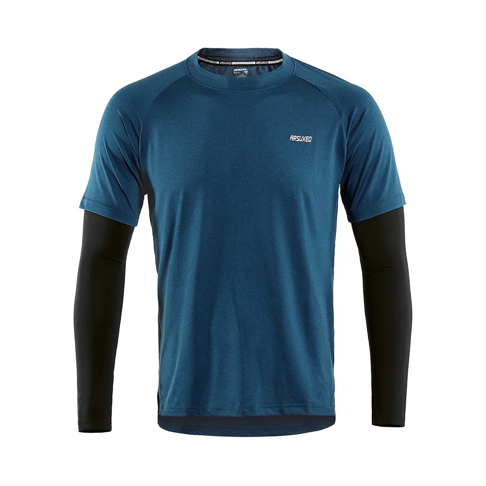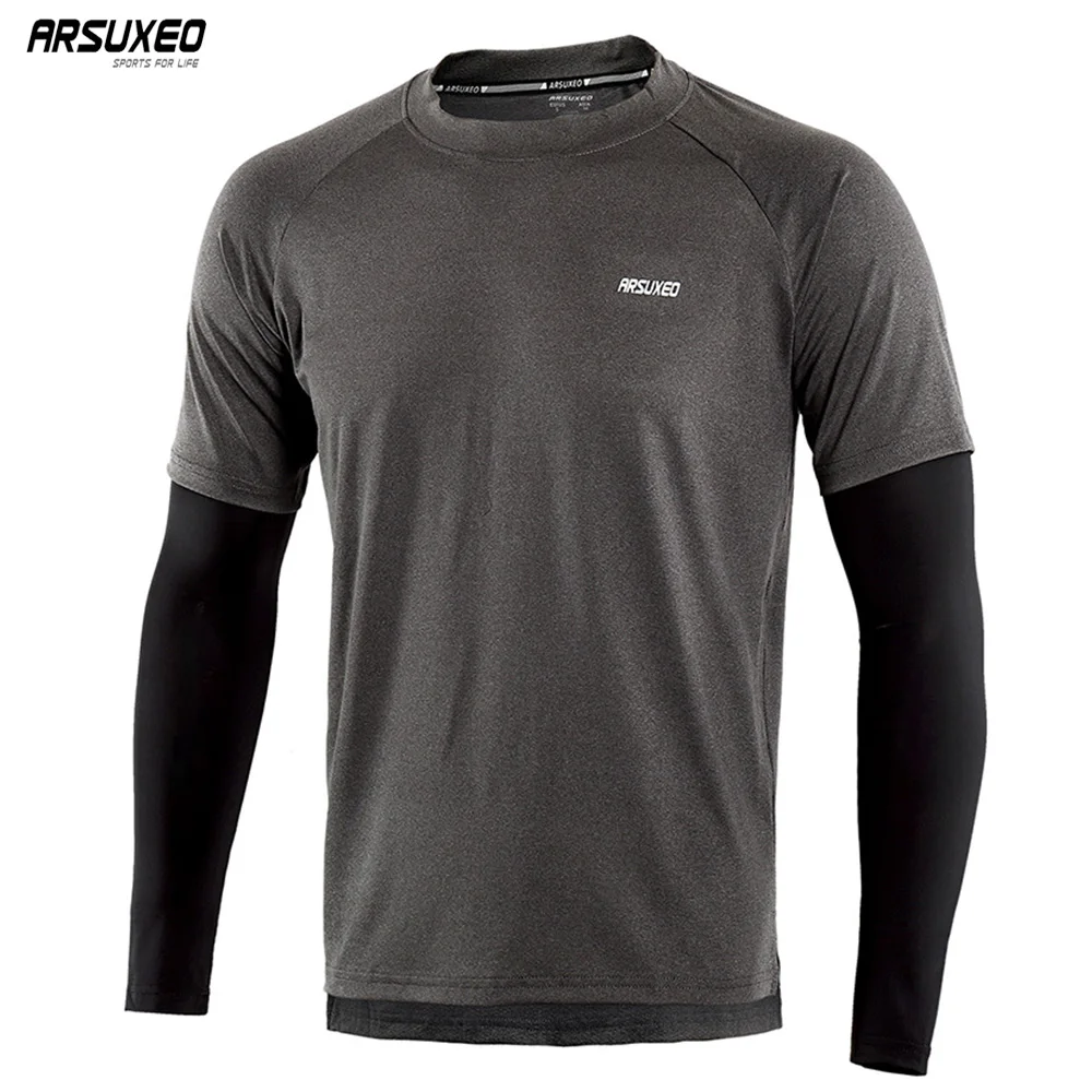 Мужская спортивная быстросохнущая футболка для бега, 3 цвета, футболка с длинным рукавом, компрессионный эластичный рукав для рук, тонкая спортивная майка для тренажерного зала
