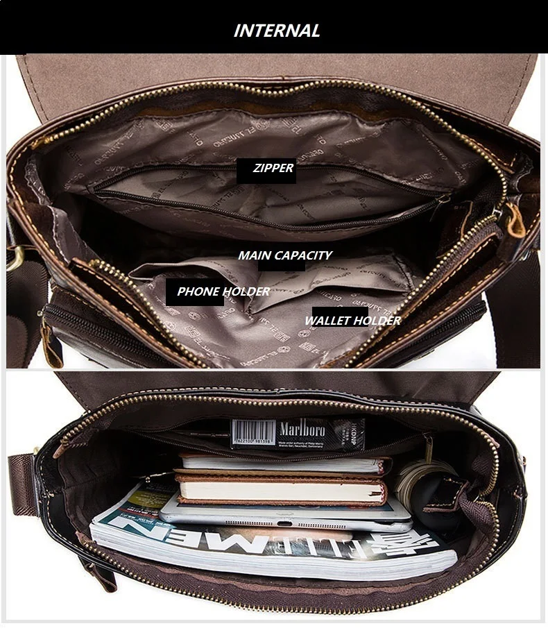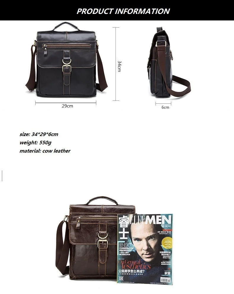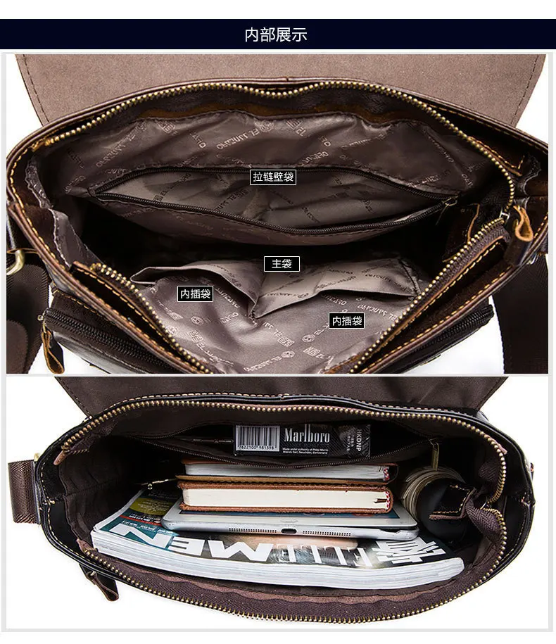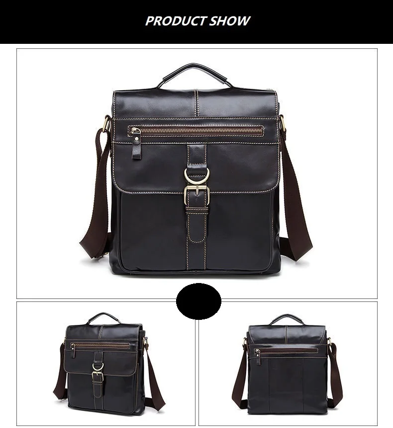 Мужской портфель из натуральной вощеной кожи, винтажный портфель на плечо в стиле ретро, 2019