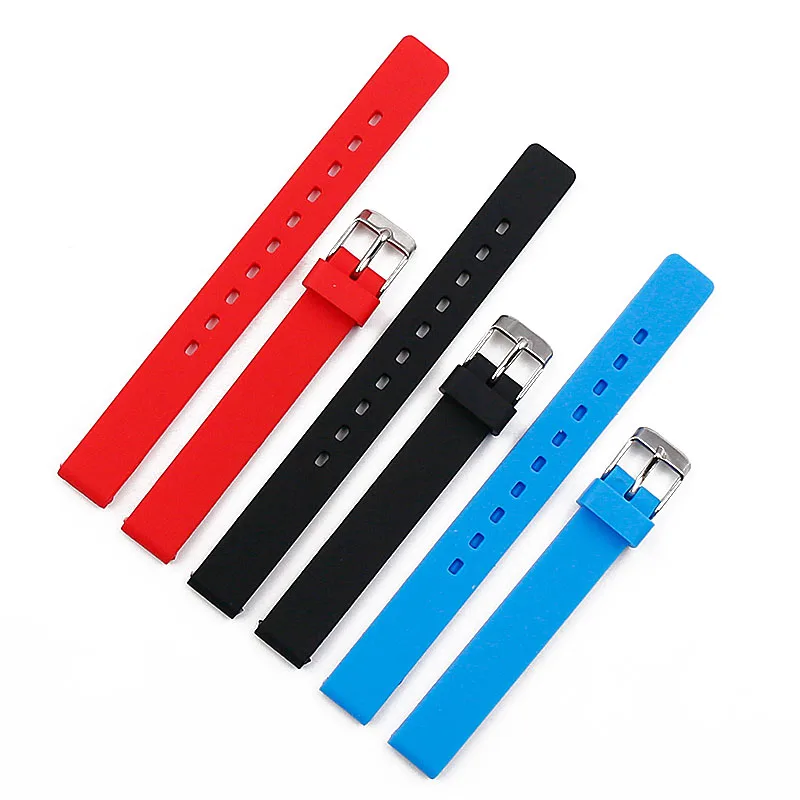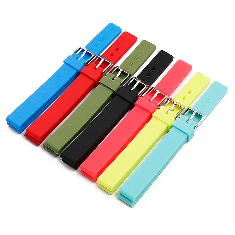 Ремешок силиконовый для часов, водонепроницаемый резиновый спортивный браслет с пряжкой с язычком 12 мм, для мужчин и женщин, Часовые аксессуары