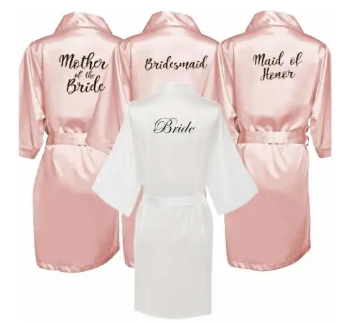 Халат-кимоно для подружки невесты, Атласный халат с белыми и черными буквами для матери, сестры невесты, свадебный подарок