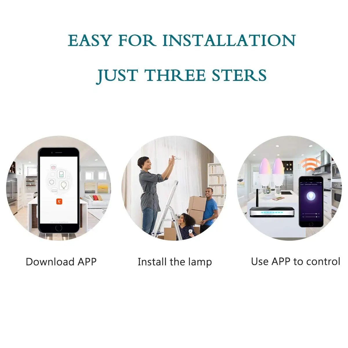 Умная Светодиодная лампа E14 с Wi-Fi, работает с Alexa Google Home, лампа мощностью 5 Вт, равная 40 Вт, RGB, холодный и теплый белый свет, светильник яет цвет, настроение