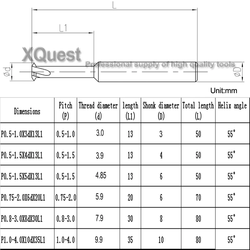XQuest жестяная твердосплавная Резьбовая фреза Pith 0,3-0,6 0,4-0,8...
