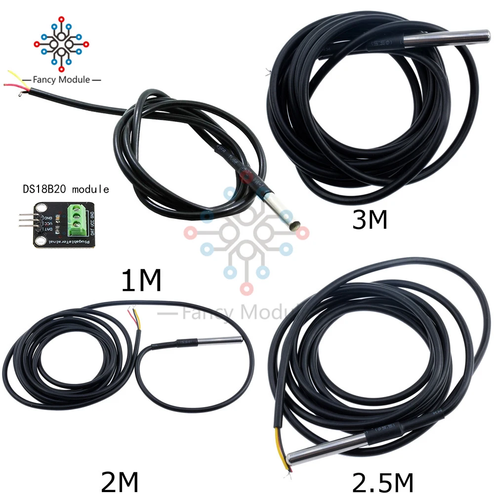 Термометр DS18B20, модуль датчика температуры, цифровой водонепроницаемый датчик температуры, комплект зондов для Arduino, 1 м2 м2,5 м3 м