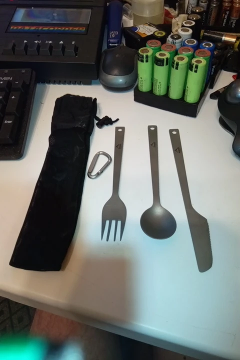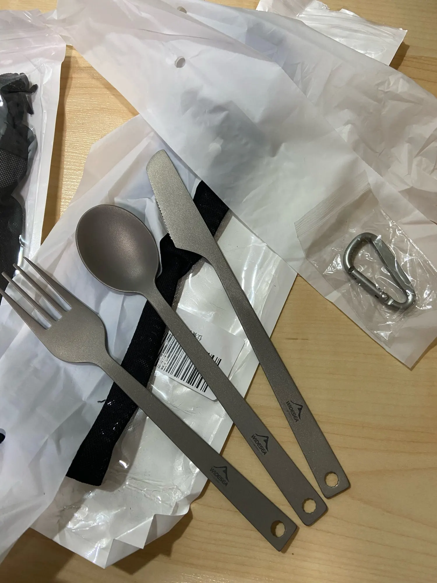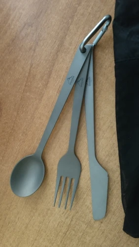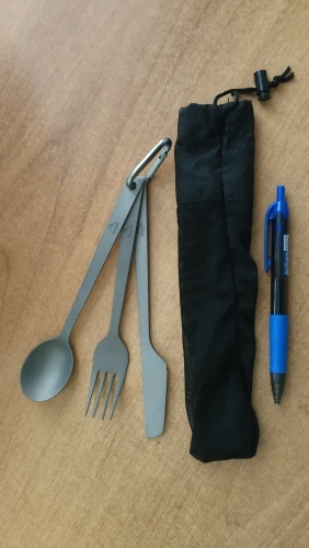 Скорее всего, я разочарован в покупке. А именно, из-за миниатюрной ложки. Она меньше десертной. Кстати, карабинчик наверное тоже из титана. Но какой в этом смысл, если его можно резать ножом так же, как и алюминий. Если бы я знал, что ложка такая маленькая, то не стал бы покупать.