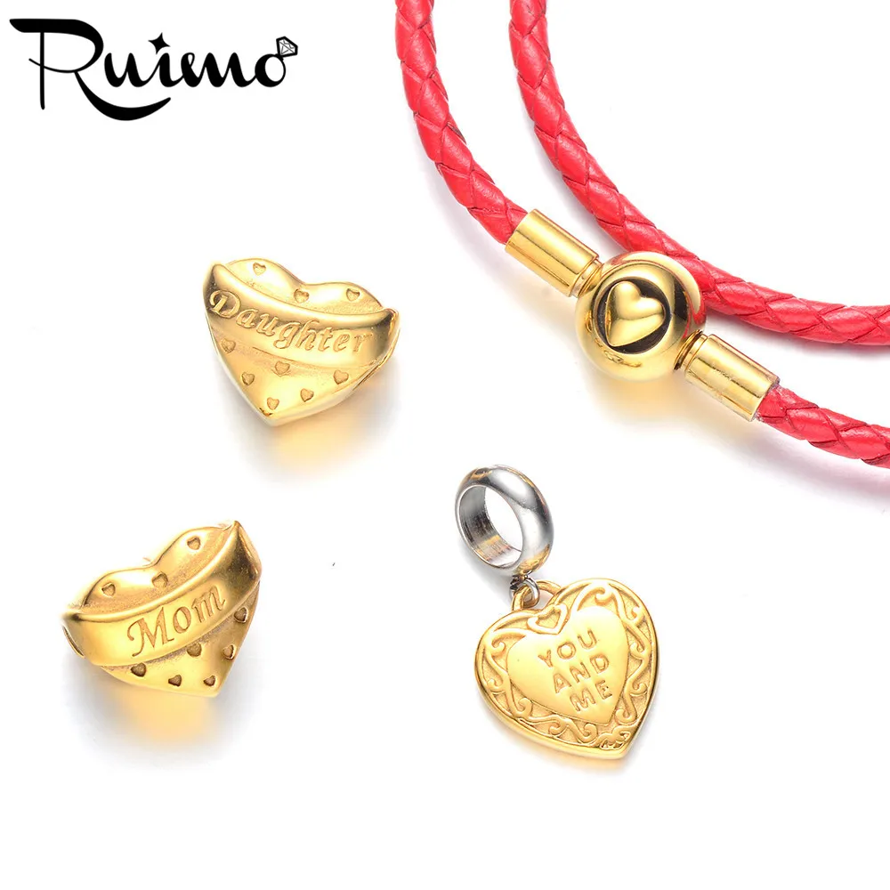 RUIMO Золотое очарование красная кожаная веревочная цепочка женский браслет двухслойные Золотые сердца бусины браслеты для мамы дочки Любовь Подарки