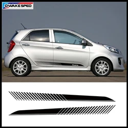 Углеродное волокно Спорт дверь боковая юбка полосы для KIA Picanto Утро Автомобиль Стайлинг кузова Декор стикер Авто аксессуары виниловые наклейки
