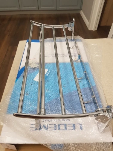 все дошло в целости...полка выглядит отлично..не тяжелая..хромированное покрытие..единственное не было шурупчиков чтобы к стене крепить...но может не входит в комплект.