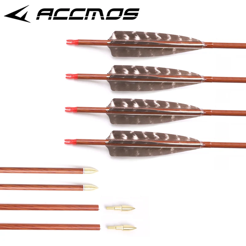 612 шт. 32 дюйма древесная кожа карбоновые стрелы Позвоночник 400 500 550 600 700 с 5 "настоящим перьем для Longbow Рекурсивный лук Охота
