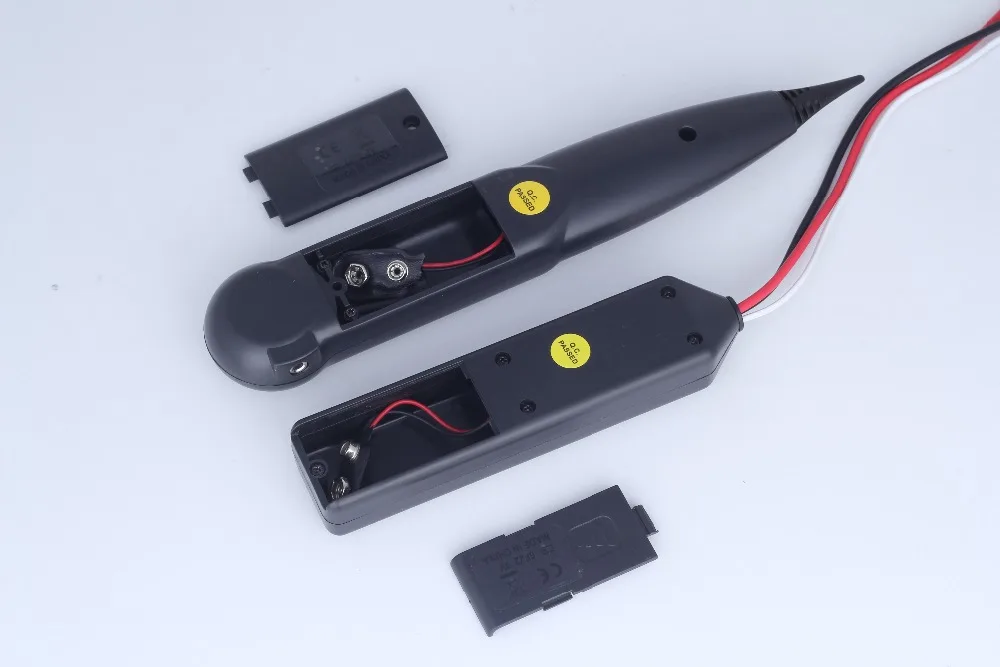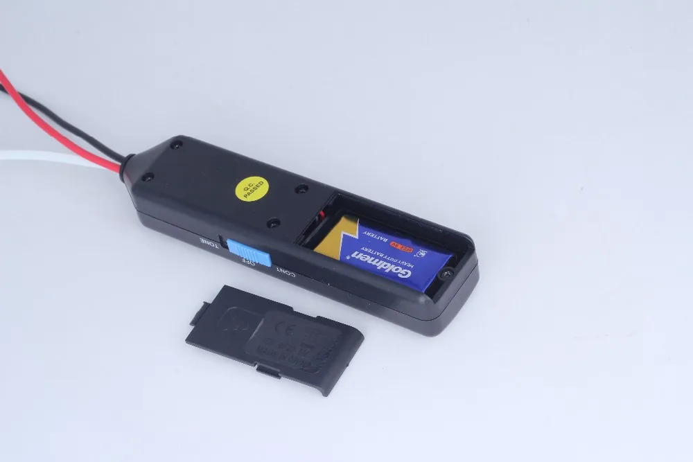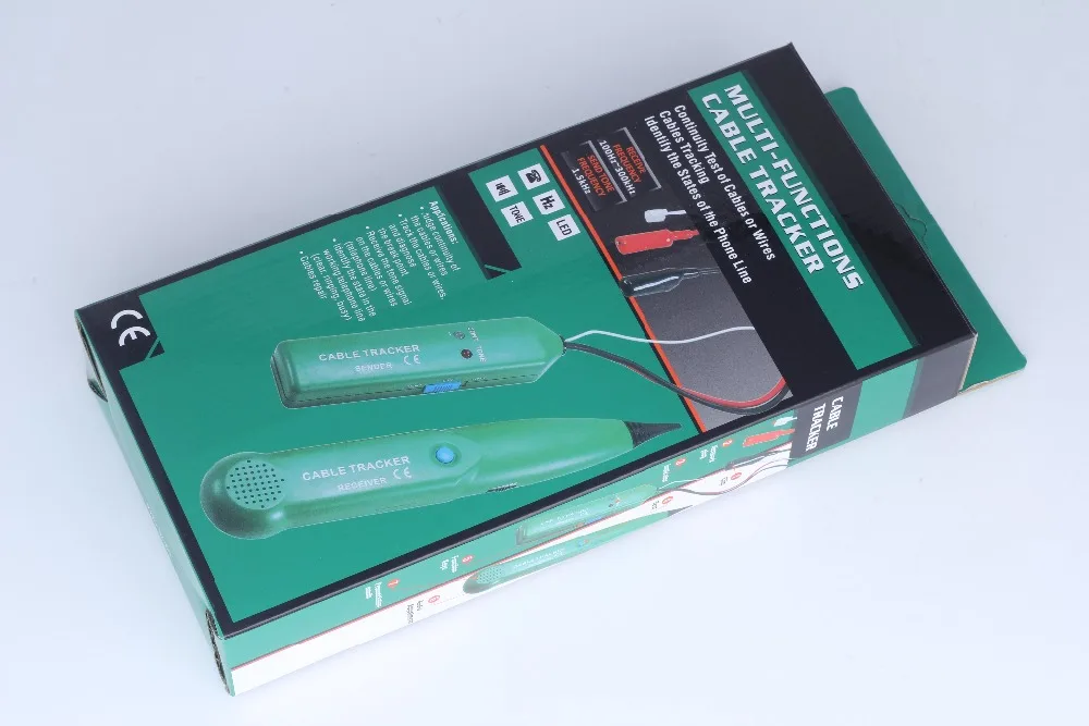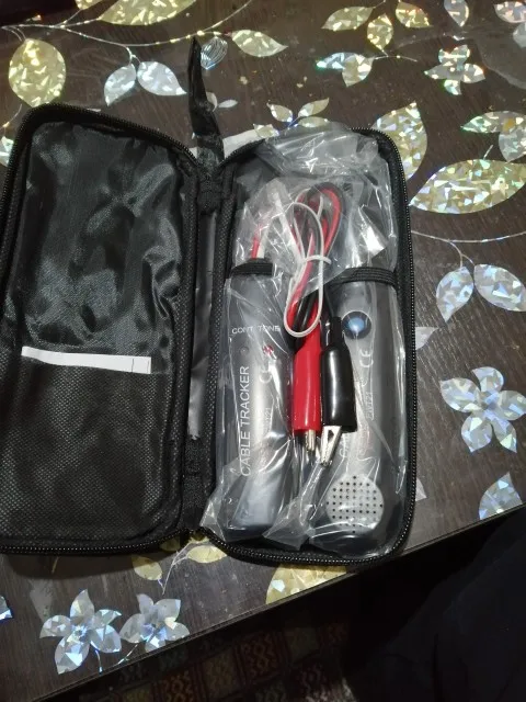 Кабель трекер прекрасно работает, в чехле, без батареек типа Крона. Тестер тоже без батарейки типа ААА, маленький и тонкий, щупы с защитными колпачками. Показывает напряжение, частоту. Пищалка и омметр. Режимы автоматически выбираются. Есть бесконтактный индикатор проводки. Доставка две недели.