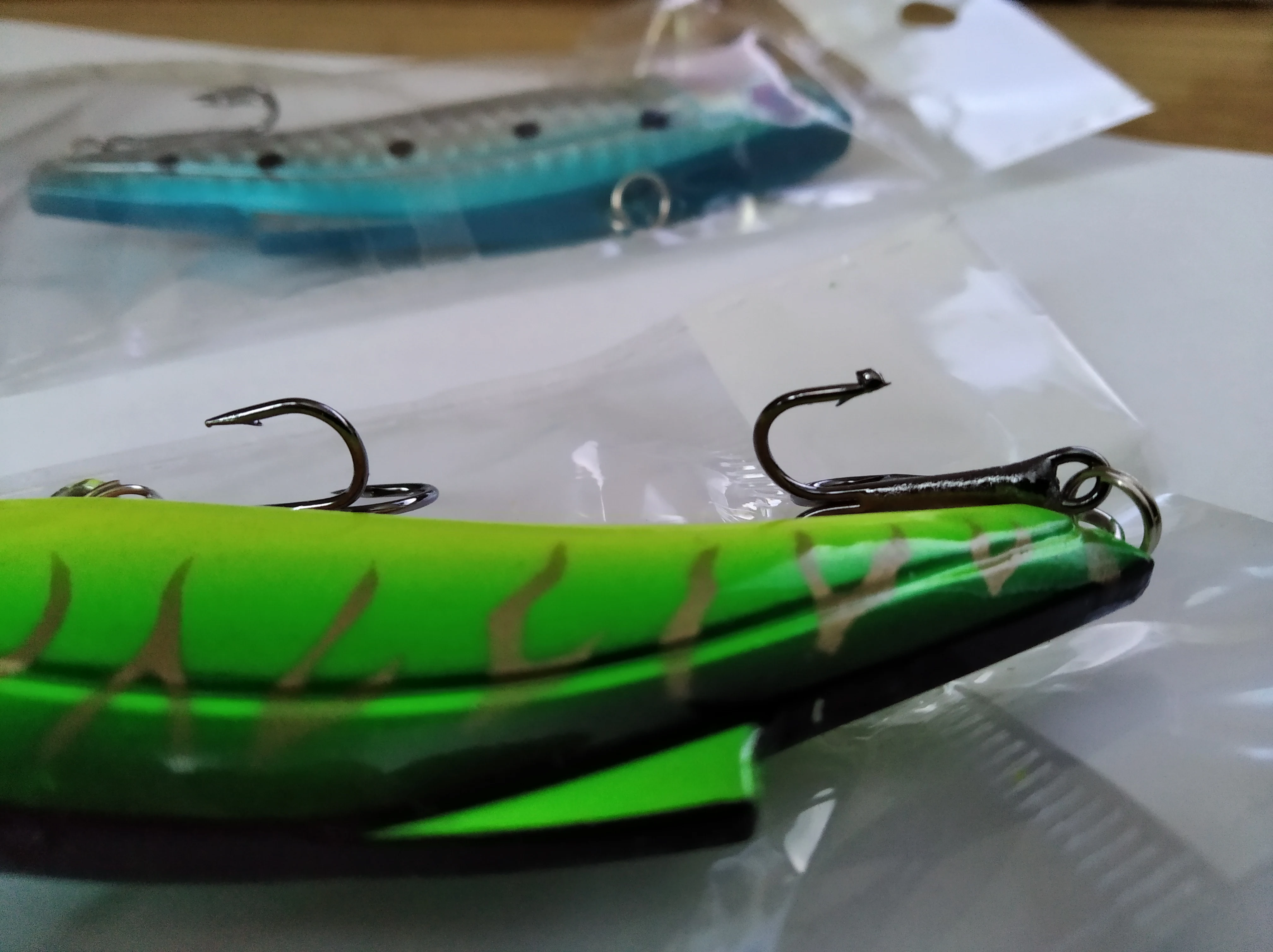 Спасибо продавцу за оперативность, посылка получена! По товару есть претензия: некачественные тройники на зеленой приманке. Голубой ратлин - все отлично! Погремушка тяжелая и глухая, стучать будет только при активном блеснении. Вес ниже заявленного 25,5 г, возможно, из-за мелких тройников. Заводные кольца круглого сечения без подштамповки. К замене - кольца и тройники.