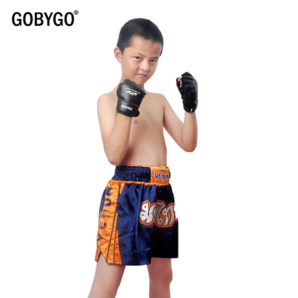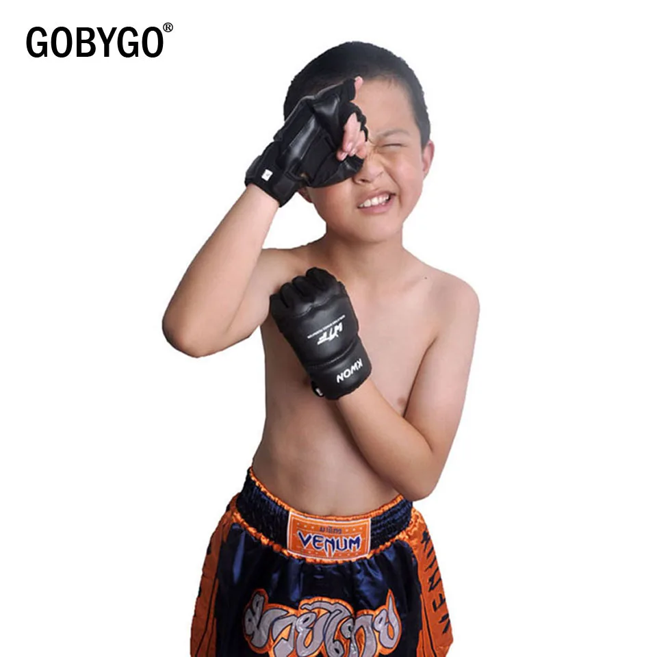Детские Боксерские перчатки GOBYGO с полупальцами, тренировочные Боксерские перчатки для из искусственной кожи, фитнеса, спарринга, тхэквондо, защитные перчатки для боевых действий