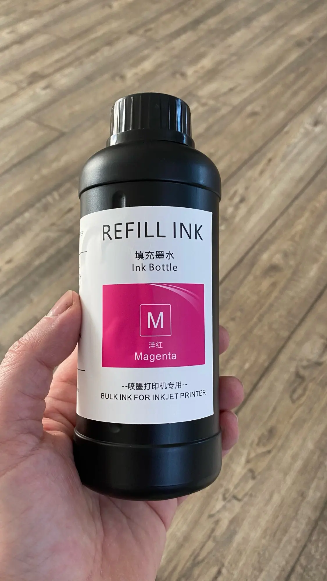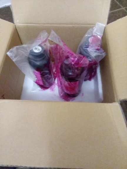 Пришло дней за 40, обе бутылки целые, ничего не пролилось. В работе ещё не пробовали, так как пока заправлен принтер, брали прозапас