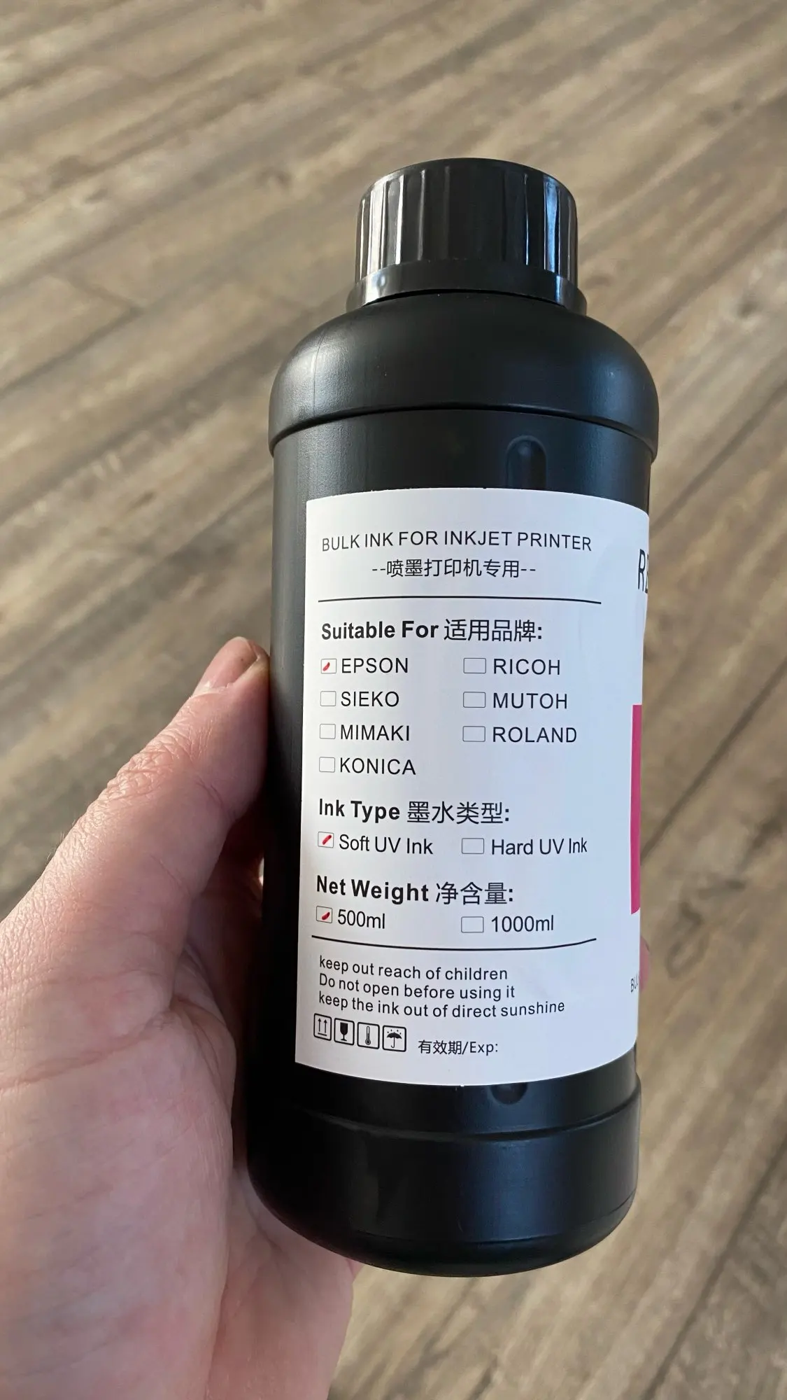 Чернила УФ светодиодные 500 мл для планшетного УФ-принтера Epson L800, L805, L1800, R290, R330, 1390, 1400, 1410, 1500 Вт, DX5, DX7