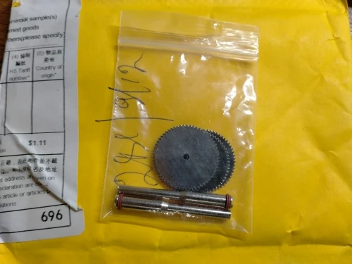 Заказ в Беларусь доставлен ровно за месяц. Вместо 10 дисков в упаковке оказалось 13. Попробовал на ДСП - режут хорошо, но сами держатели имеют небольшое биение.