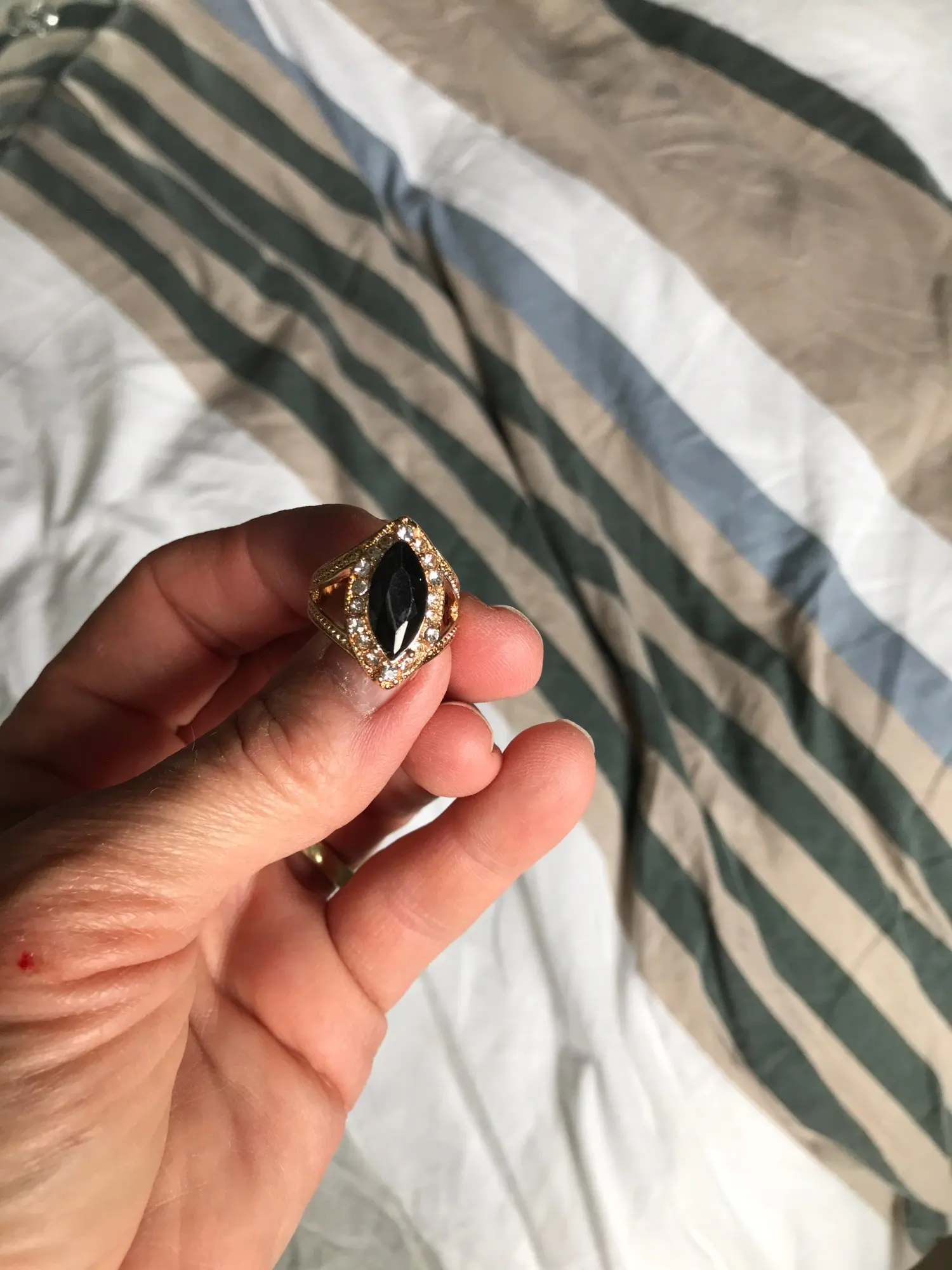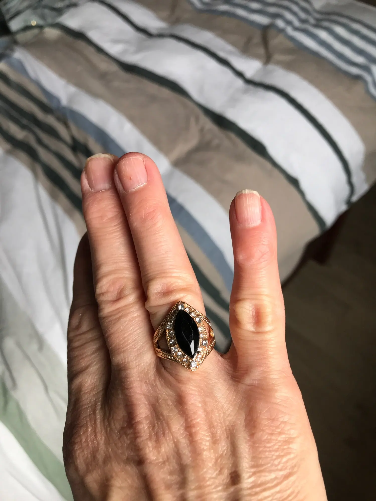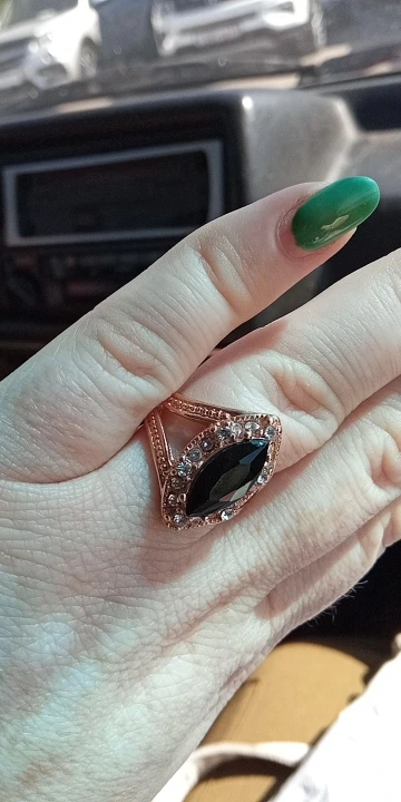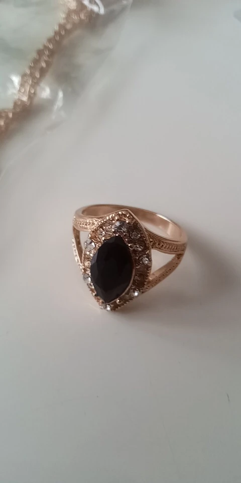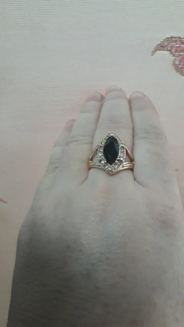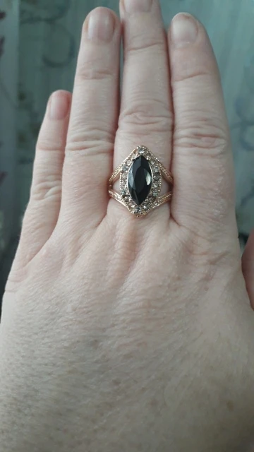 Кольцо пришло быстро вмести с другим товаром. Очень красивое я в восторге. Как долго сохранит свою красоту напишу потом. Очень похоже на золотое. Чёрный камень в окружение блестящих и в золотом цвете смотрится очень благародно.Спасибо буду заказывать ещё.