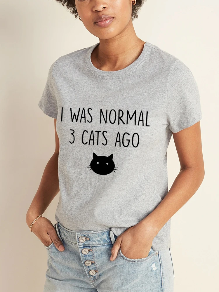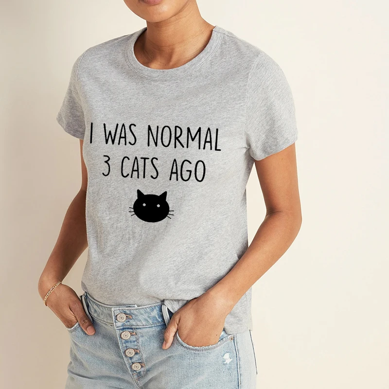 Футболка Хлопковая женская, с надписью I Was Normal 3 Cats Ago, зимняя, свободная