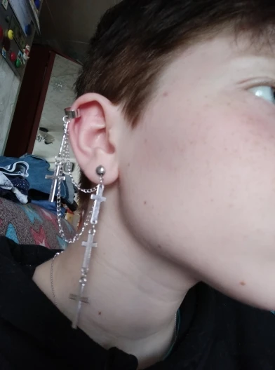 Серёжка просто каеф. Из-за своей рукожопости я потерял застежку, но это уже мои проблемы. Она достаточно массивная, с первого раза одеть сложновато (ну или это у меня мозгов нет). Ношу уже два месяца, краска начала немного слезать, но это можно исправить с помощью чёрного лака. Вообщем за такую цену могу спокойно поставить пять Дио из пяти ( ・ω・)☞