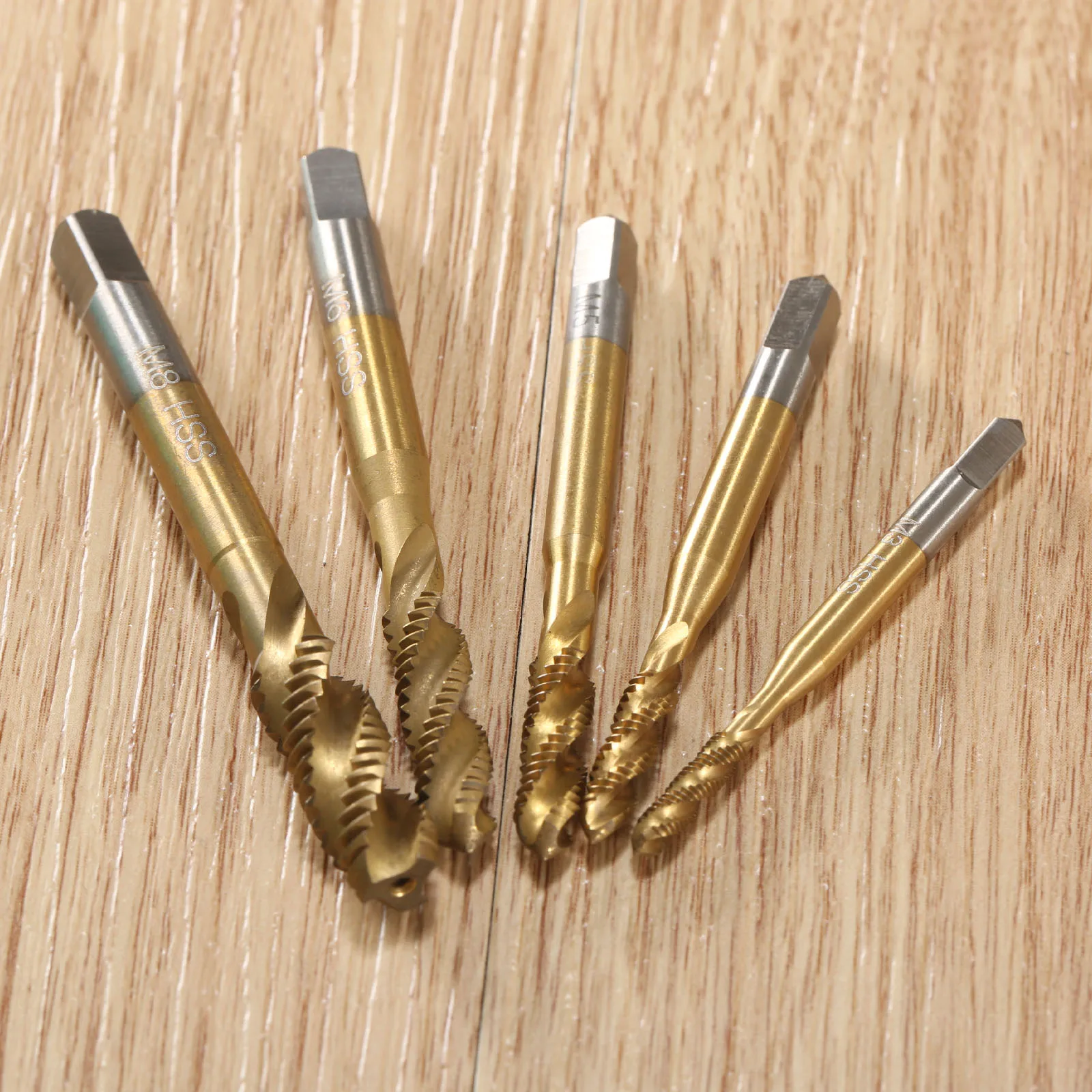 5 шт./компл. сверлильный нарезной высокоскоростной стальной HSS спиральный точечный кран флейта резьба Метрическая машина винтовой кран Набор инструментов M3 M4 M5 M6 M8