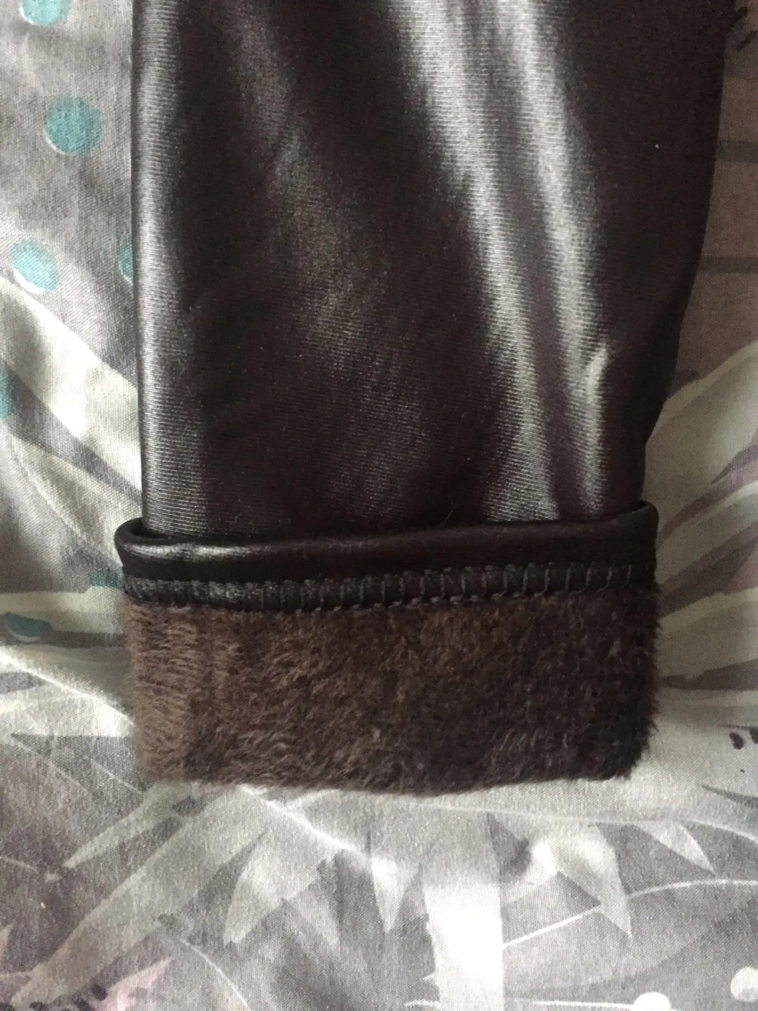 Заказала на подарок девочке 12 лет исполнилось, взяла рост 150 думаю будут хорошо по размеру, но это не зам кожа а ткань с напыление каким-то блестит под кожу, внутри тёплые меховые, дошли очень быстро, спасибо продавцу