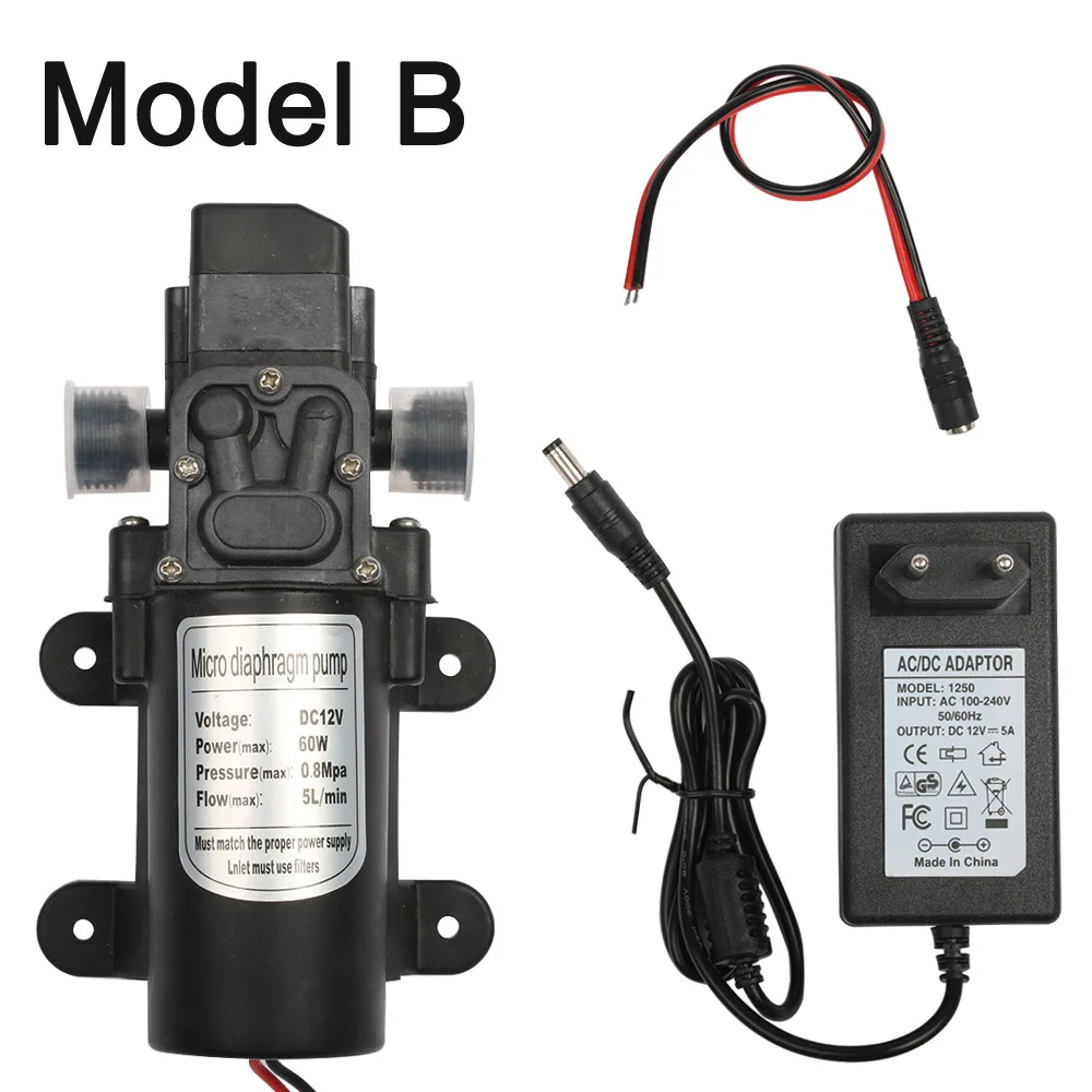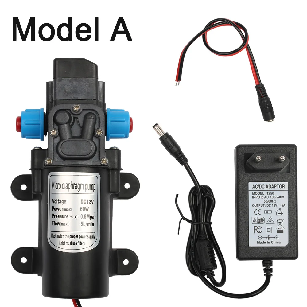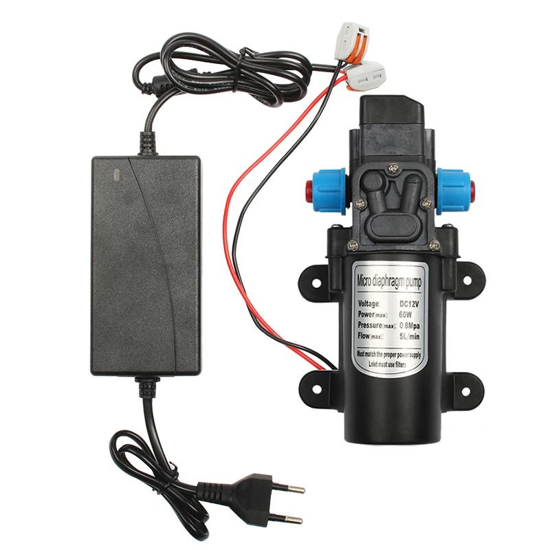 Электрический мембранный Водяной микро-насос, 60 Вт, 12 В постоянного тока, автоматический переключатель, 5 лмин., вакуумный насос высокого давления для мойки автомобилей, 0,8 МПа, 5 лмин.