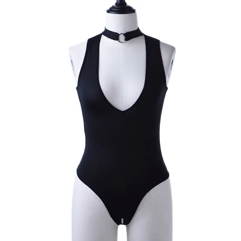 Сексуальное женское нижнее белье с открытой промежностью, боди, стринги в стиле панк, халтер, Цельный купальник, эротическое белье F10