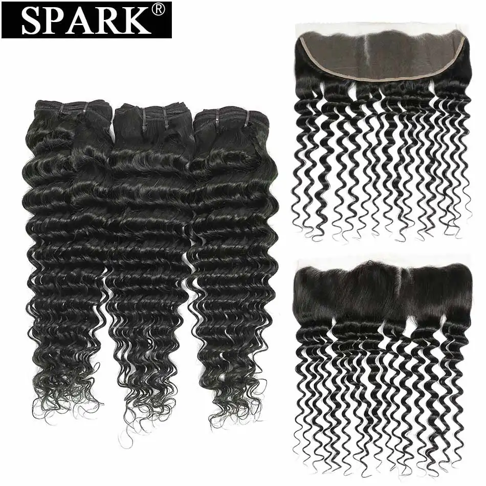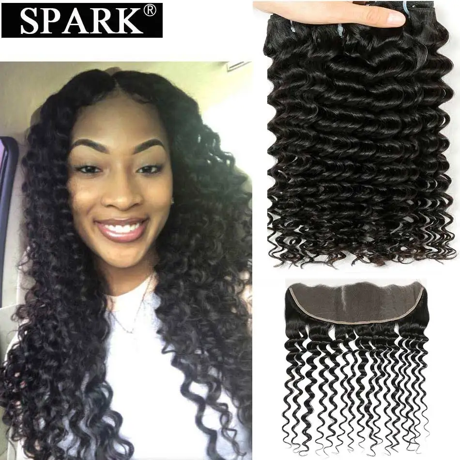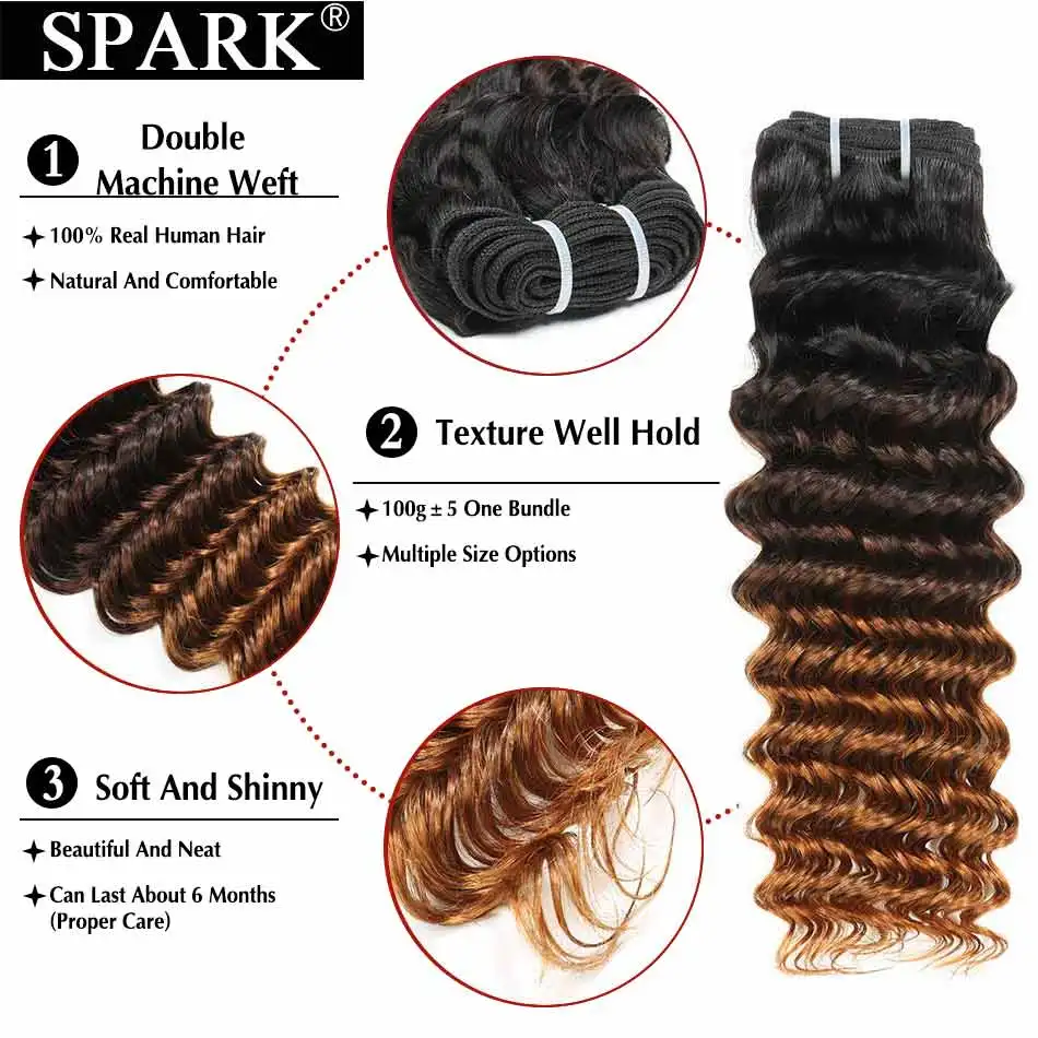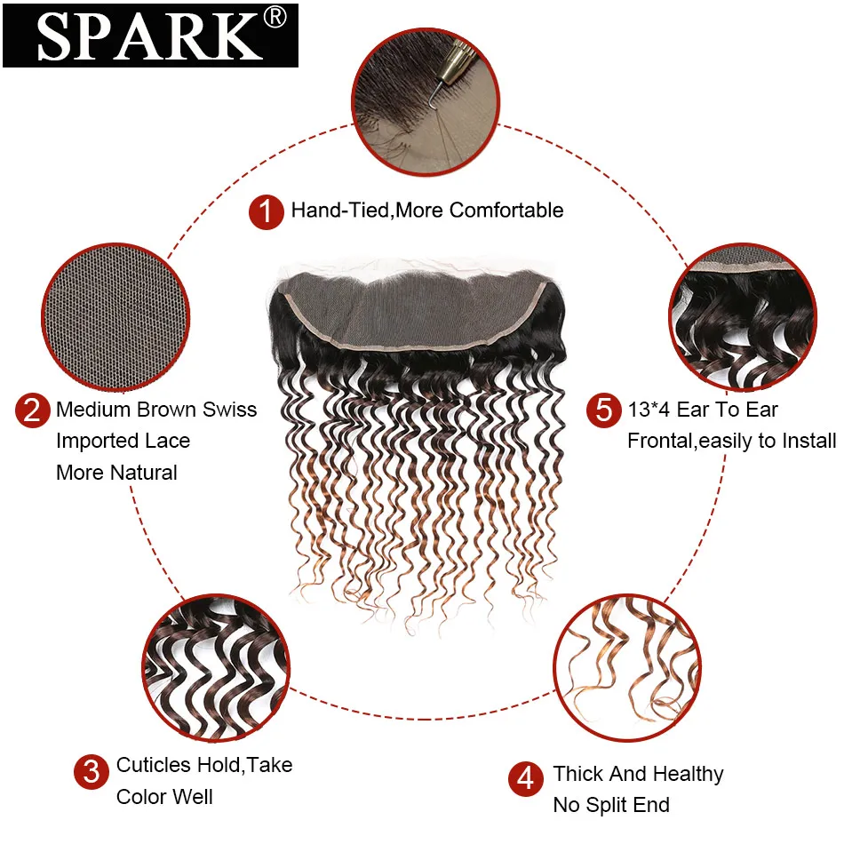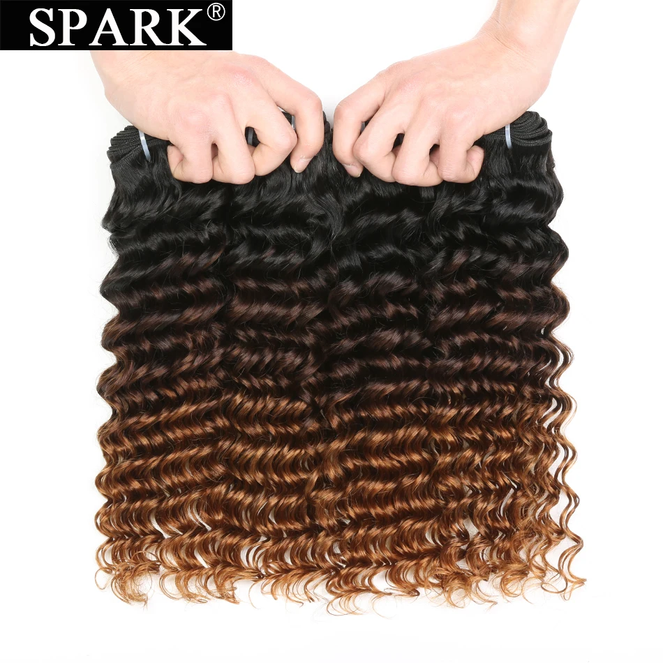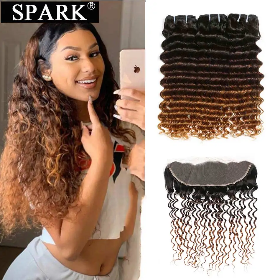 Пучки человеческих волос Ombre бразильские волнистые волосы Spark Remy, с фронтальной сеткой от уха до уха, с пучками для чернокожих женщин L