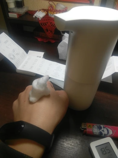 Заказала без мыла, сначала испугалась, тк коробка была открыта и были следы мыла в отсеке для мыла, потом вспомнила что заказала без него) налила свое мыло, штука крутая, очень удобно, нажимать ничего не надо, просто поднести руки, ну и то что делается из мыла мягчайшая пена это конечно экономит само мыло, рекомендую