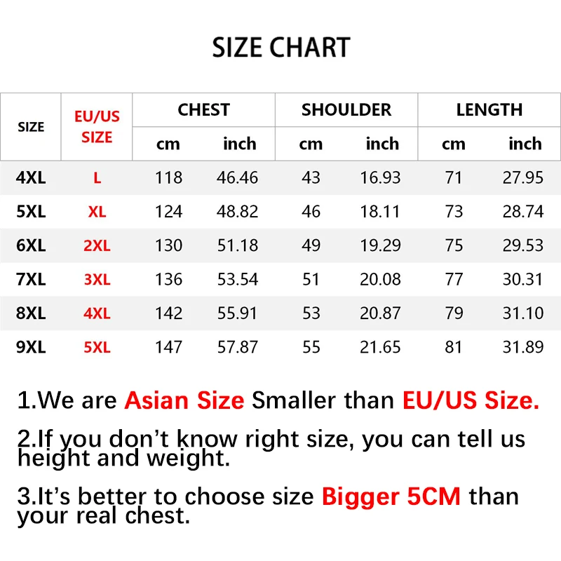 Size4XL, 5XL, 6XL, 7XL, 8XL, 9XL