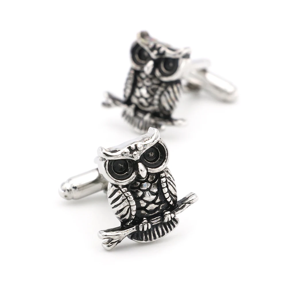 Мужские запонки в виде совы, винтажные запонки из меди черного цвета