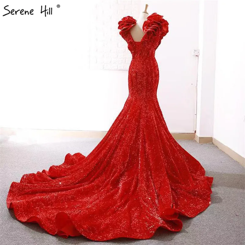 Красные высококачественные свадебные платья без рукавов с глубоким v-образным вырезом, сексуальные тонкие расшитые блестками свадебные платья Русалочки 2021, реальное изображение HM66736