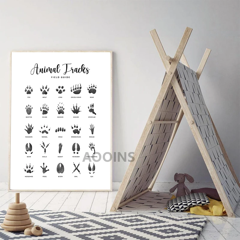 PurposeWoodland Animal Footprints Canvas Painting Home Room Decoration