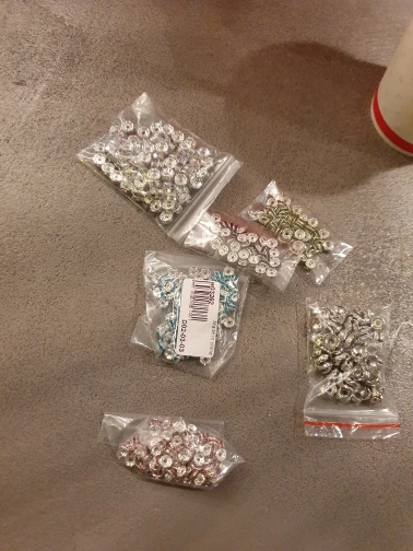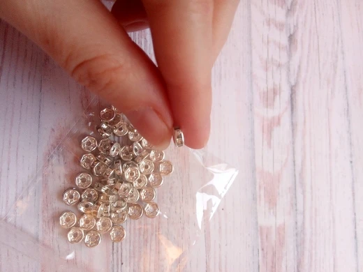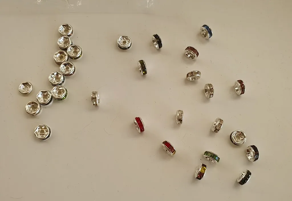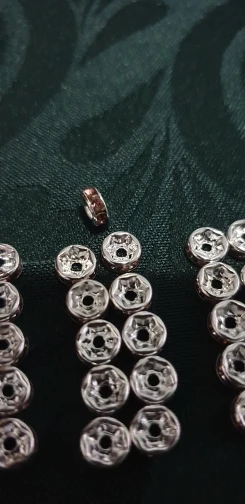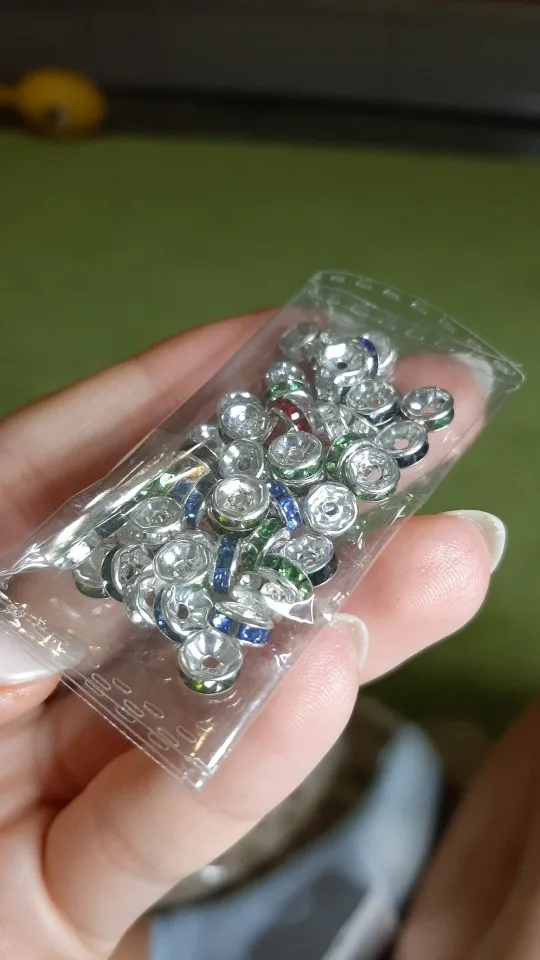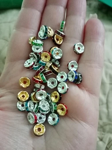 Отличные разделители. Пришли быстро. В этот раз заказывала размер 6мм с чёрными стразами и темно-зелёными. Но если Вам нужно, чтобы их цвет более чётко просматривался, выбирайте более светлые оттенки. Качество отличное, металл яркий под светлое серебро. Спасибо, рекомендую магазин и товар.