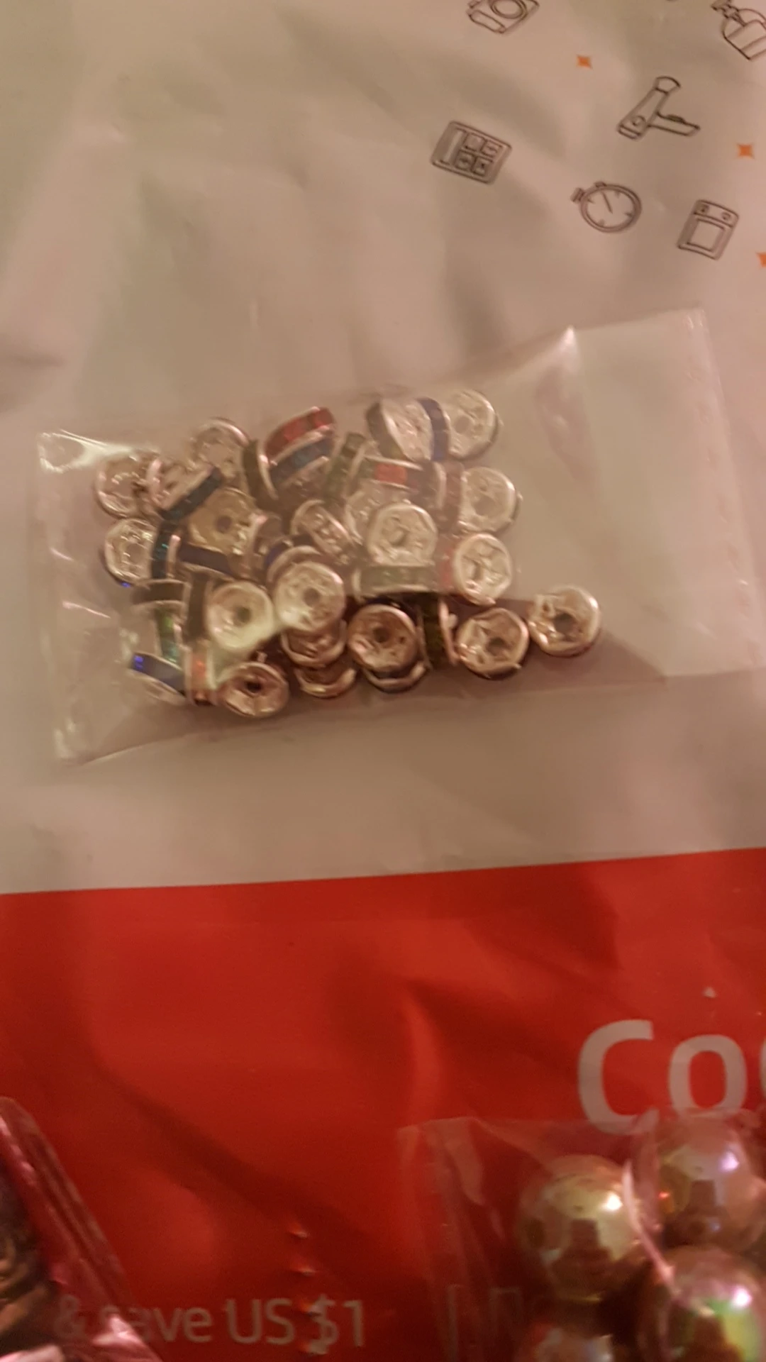 Дата заказа: 12 ноября 2020г, получено 4 декабря 2020г (Республика Адыгея), цена за 50шт (10+6мм) 53,08 руб Пришло заявленное количество бусин со стразами. Одна бусина с разноцветными по кругу камнями, остальные однотонные. Жаль только, что их не по одинаковому количеству в цветовых тонах. С белыми стеклышками 4шт, с чёрными 3шт, больше всего с салатных, но все бусины целые, все камушки на месте!