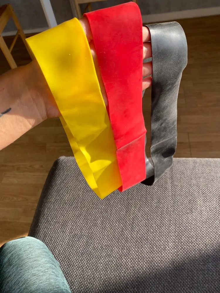 Очень хорошие резинки. Пока пользовалась только синей. Для новичка отлично, хорошая нагрузка.