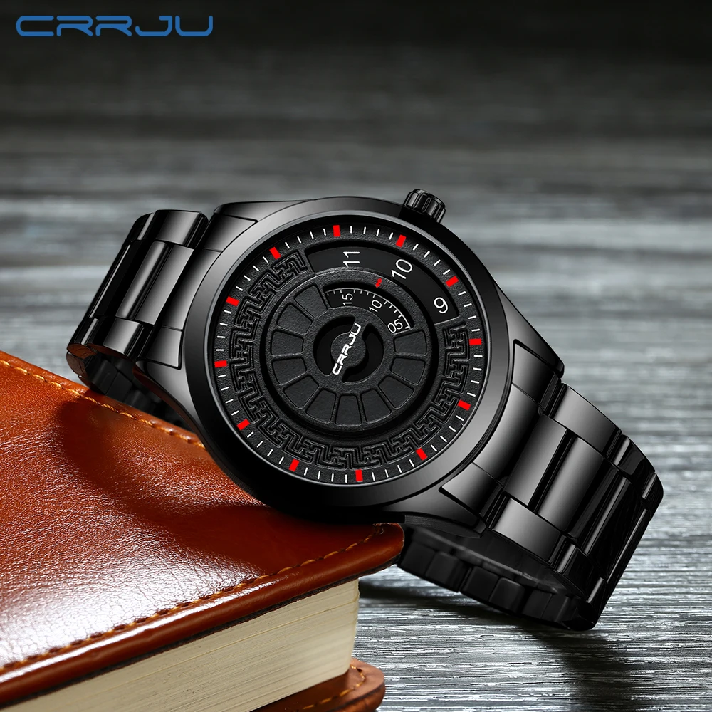 CRRJU модные мужские часы, Топ люксовый бренд уникальный стиль часы Мужские кварцевые часы водонепроницаемые спортивные часы с большим циферблатом Ретро Relogio