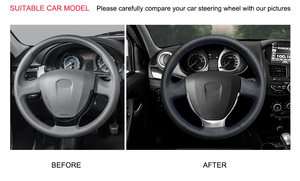 ставил на гранту седан 2020, кожа хорошая, мягкая, лопаткой удобно подсовывать в щели,оплётка идеально подходит на руль,повторяя все изгибы, главное,ее правильно разместить на руле,с первого раза получится слегка кривовато,но руку набиваешь быстро, можно переделать при желании, в комплекте два мотка ниток,прошивал одной ниткой, поэтому даже один моток не до конца израсходовал,делал первый раз,на все ушло 4,5 часа