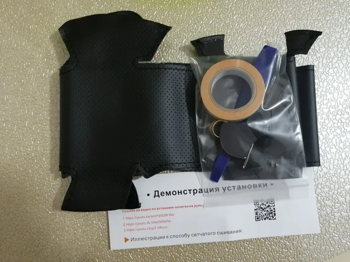 ЗАКАЗАЛ ИЗ РОССИИ ТОВАР ШЁЛ 15 ДНЕЙ НА ГРАНТУ ПОДОШЛО ИДЕАЛЬНО ПРАВДО ПРИШЛОСЬ ПОТРУДИТЬСЯ, НИТОК ДОСТАТОЧНО, А СКОТЧ ПОЛНОЕ А...МНО К РУЛЮ ПРИКЛЕЕТЬ НЕ РЕАЛЬНО ЛУЧШЕ ДОКУПИТЬ ХОРОШИЙ СКОТЧ И ОБЕСЖИРИТЬ РУЛЬ.