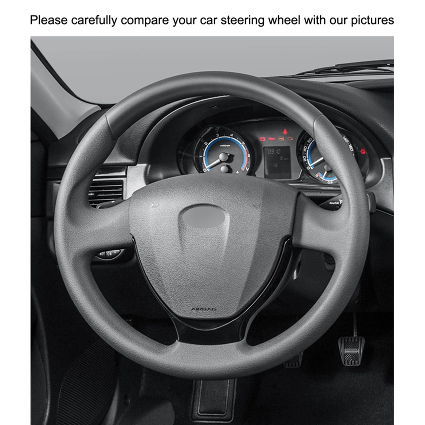 Сшитый вручную черный чехол рулевого колеса автомобиля из искусственной кожи для Lada Granta 2018-2019 Priora 2 2013-2017 2018 Kalina 2