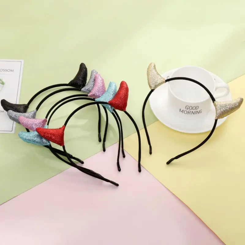 Повязка на голову для взрослых и детей, с рогами, эластичная ткань, для Хэллоуина, рождественской вечеринки, косплея, дьявола, демона, козы, рога
