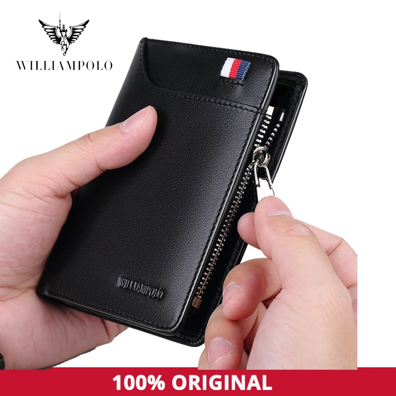 Кошелек мужской из натуральной кожи, с отделением для карт, на молнии