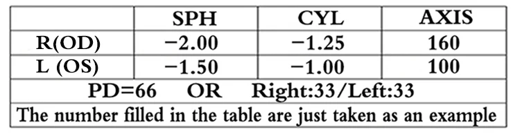 2. Выберите один из линз (подходит для вашего диоптрия)