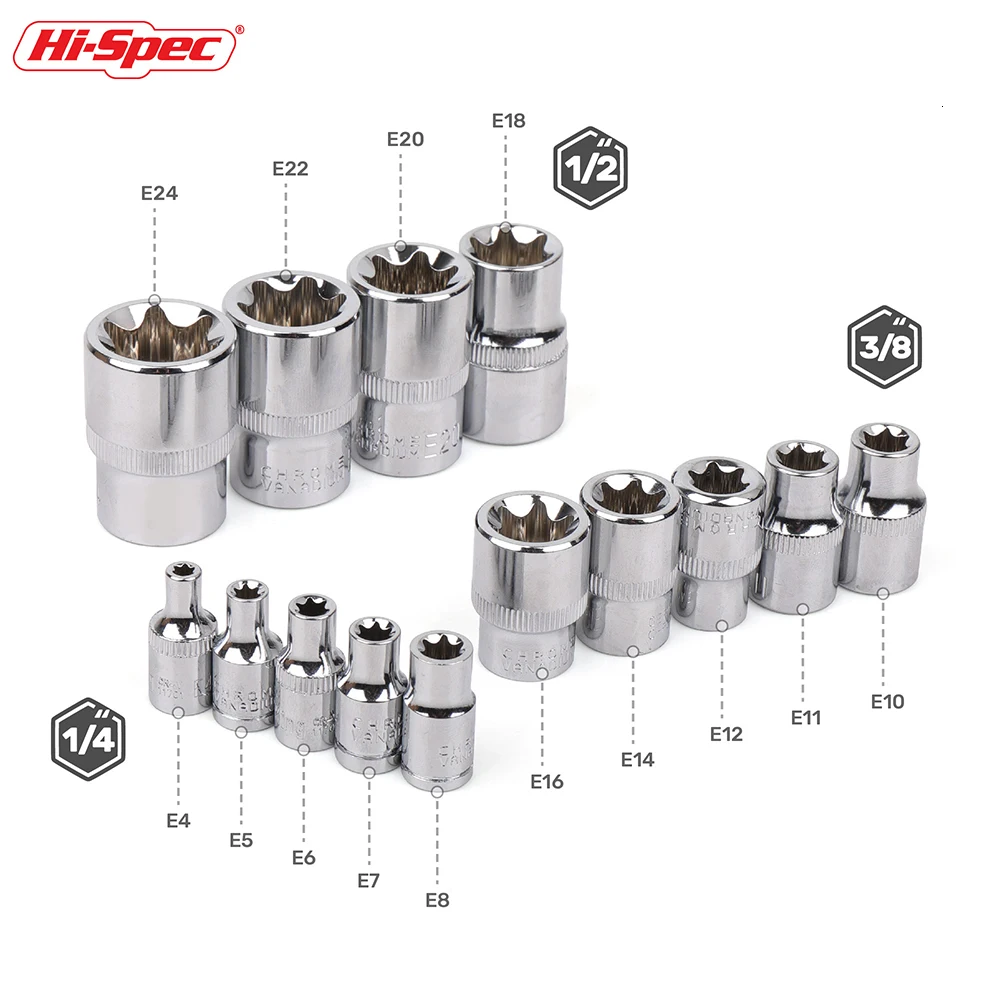 Набор головок Hi-Spec 14 "38" 12 E-Socket, адаптер, звезда, ручной инструмент для ремонта бит, головка для гаечного ключа с трещоткой, торцевой ключ
