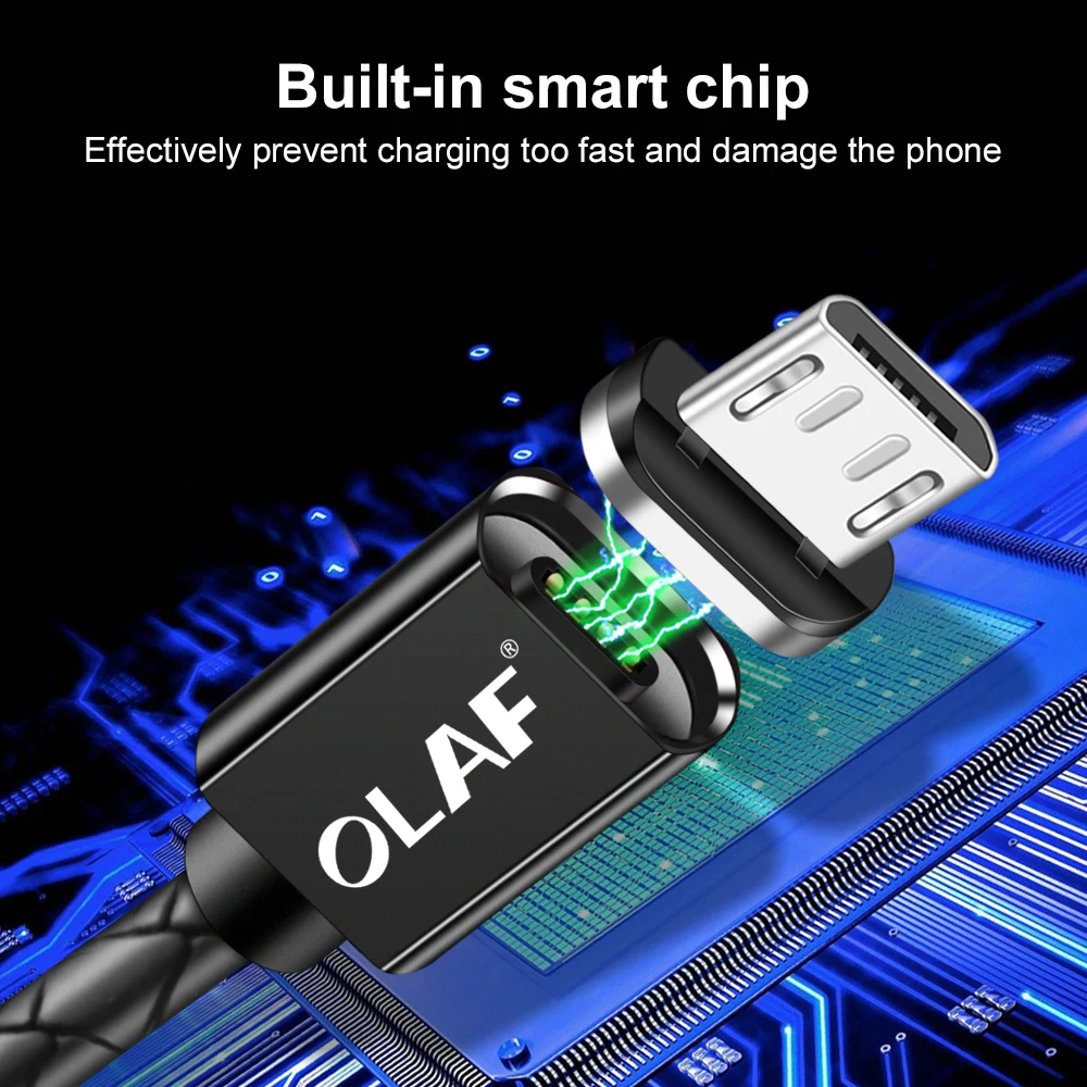 Магнитный кабель Olaf, Micro usb, Type-C, Сверхбыстрая Зарядка телефона, для iphone 7, huawei, xiaomi