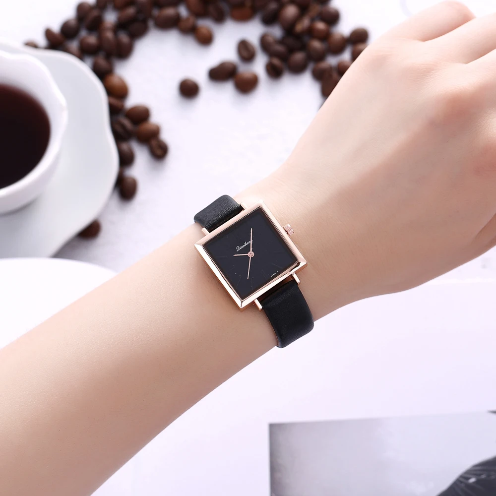 Женские кварцевые часы с рельефным циферблатом и кожаным ремешком