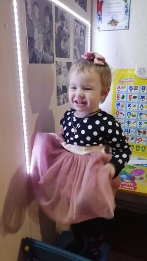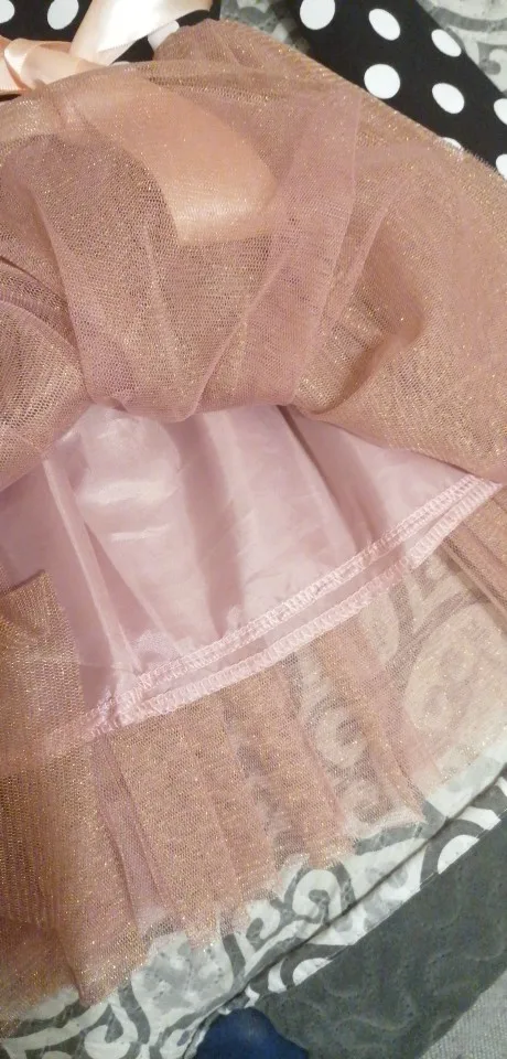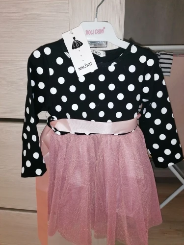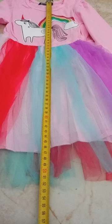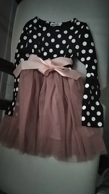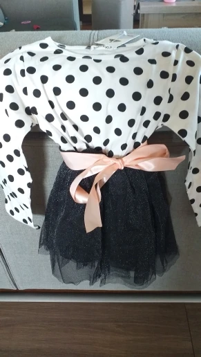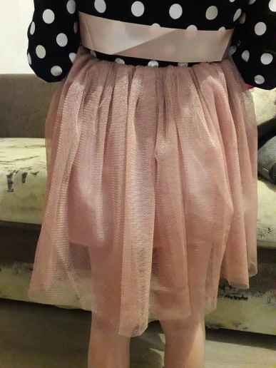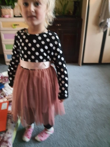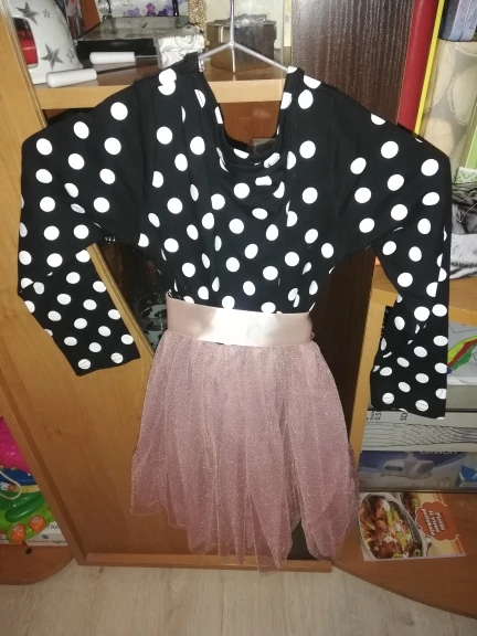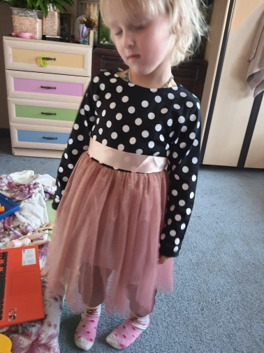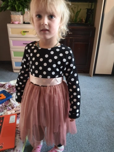 Быстрая доставка (14 дней) и хороший продукт. Размер немного мал (размер соответствует 110, у моей дочери 104, и он идеально подходит). Талия может быть немного ниже, а нижняя юбка может быть немного длиннее, но в целом действительно красивое платье и настоящее хорошее качество!