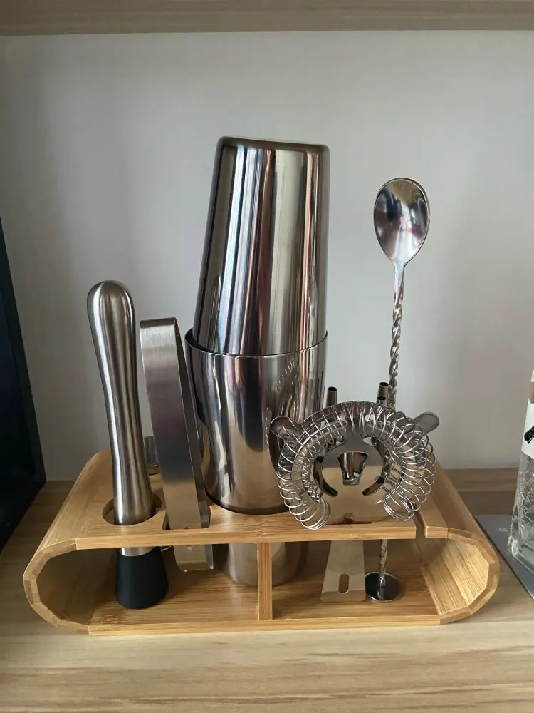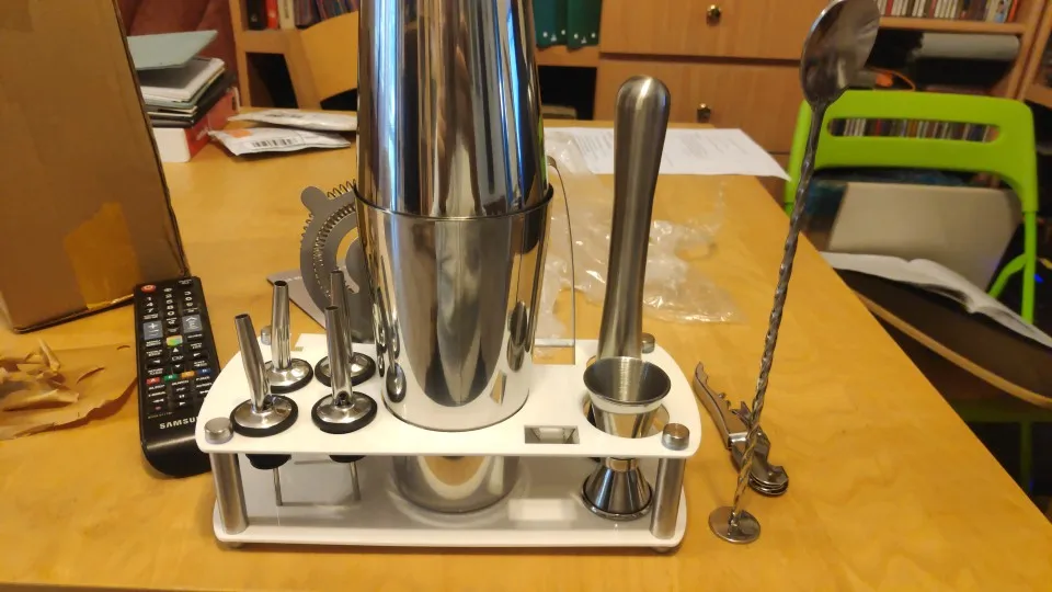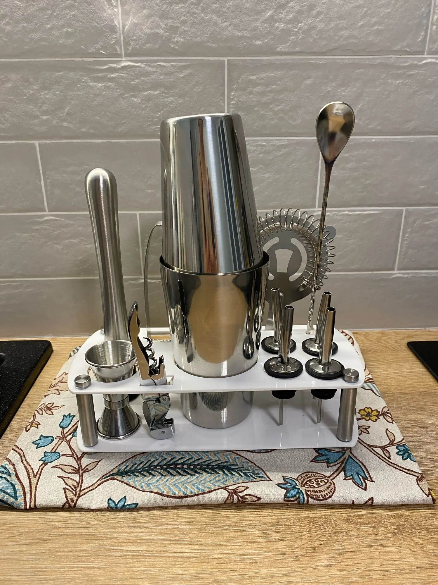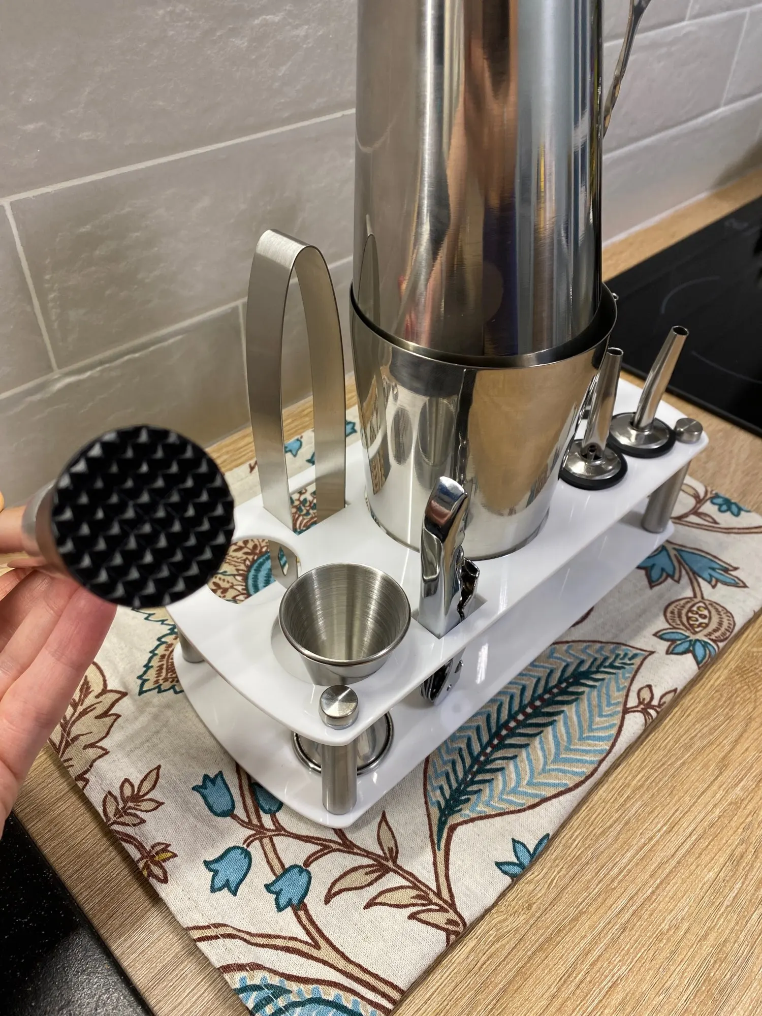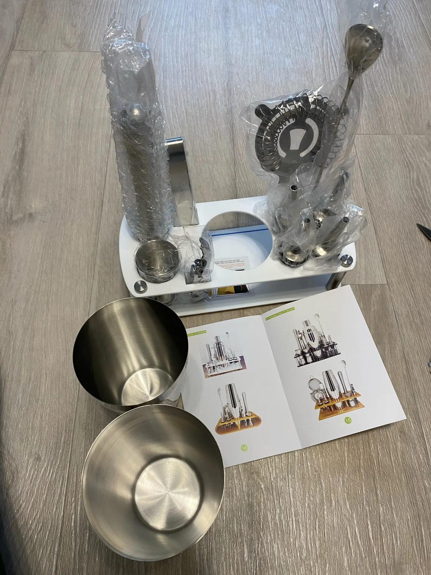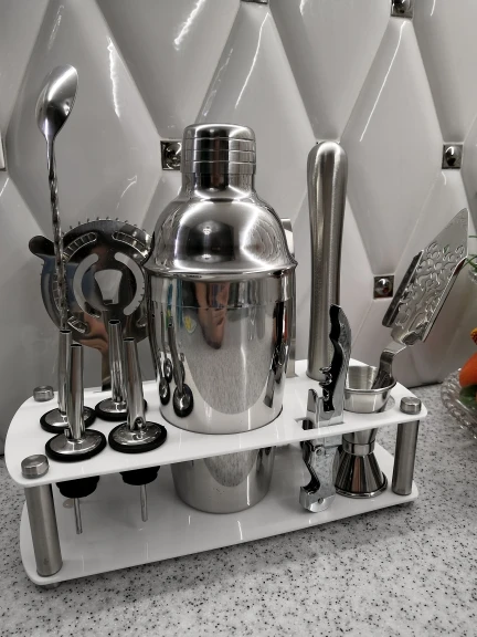 Спасибо за товар! Приехал очень быстро на кассу магазина)) буквально за 4 дня до Воронежа. Муж в восторге. Всё очень супер хорошо упаковано, даже сама стойка была в пленке, чтобы не поцарапалась + была разобрана. Возможно за 1800₽ (23,79$) дороговато, но в городе таких наборов не нашла. Выбрала белый) в джиггере так и не поняли сколько миллилитров, кажется 20 (маленькое отделение 10) это конечно для коктейлей маловато, ну значит пить меньше будем (здоровее будем)! Хах!))) берите, не пожалеете! Смотрится оч хорошо. Даже перед гостями будет не стыдно.